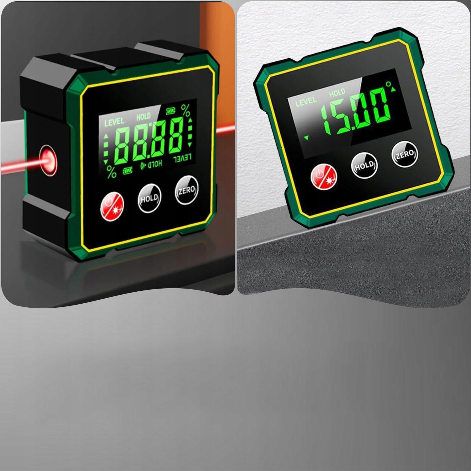 ✔️Универсальный инклинометр:Цифровой уровень плавно переключается между единицами измерения угла и наклона. В стандартном режиме встроенный цифровой инклинометр мгновенно определяет и отображает текущий угол любой поверхности, что делает его идеальным для оценки уклона.