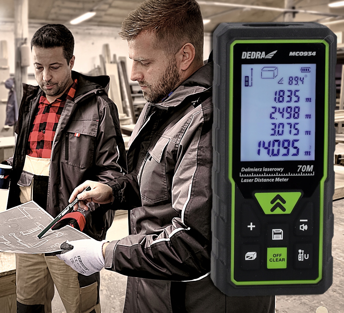 Лазерный дальномер MC0934 устойчив к пыли и брызгам, что делает его пригодным для ремонта, строительных работ и домашнего использования.