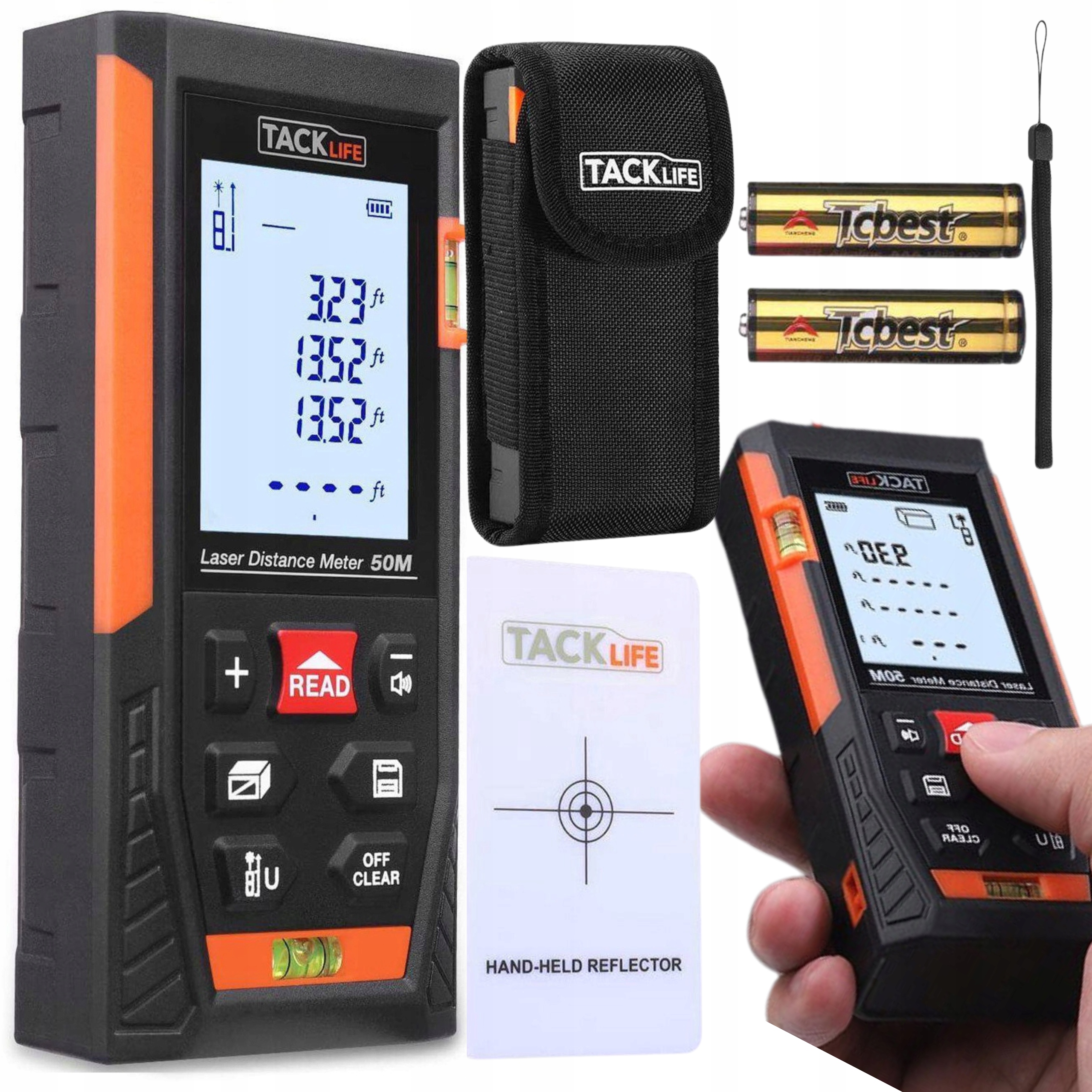 Лазерное измерение расстояния до липкости, 2 пузырьковых уровня, измерение расстояния HD50, площади и объема