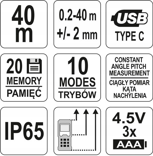 ЛАЗЕРНИЙ ДАЛЕКОМІР YATO 10 РЕЖИМІВ 40М