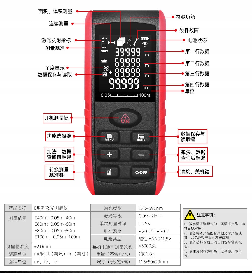 Лазерный дальномер >> 50 м << цифровой лазерный измеритель, батареи