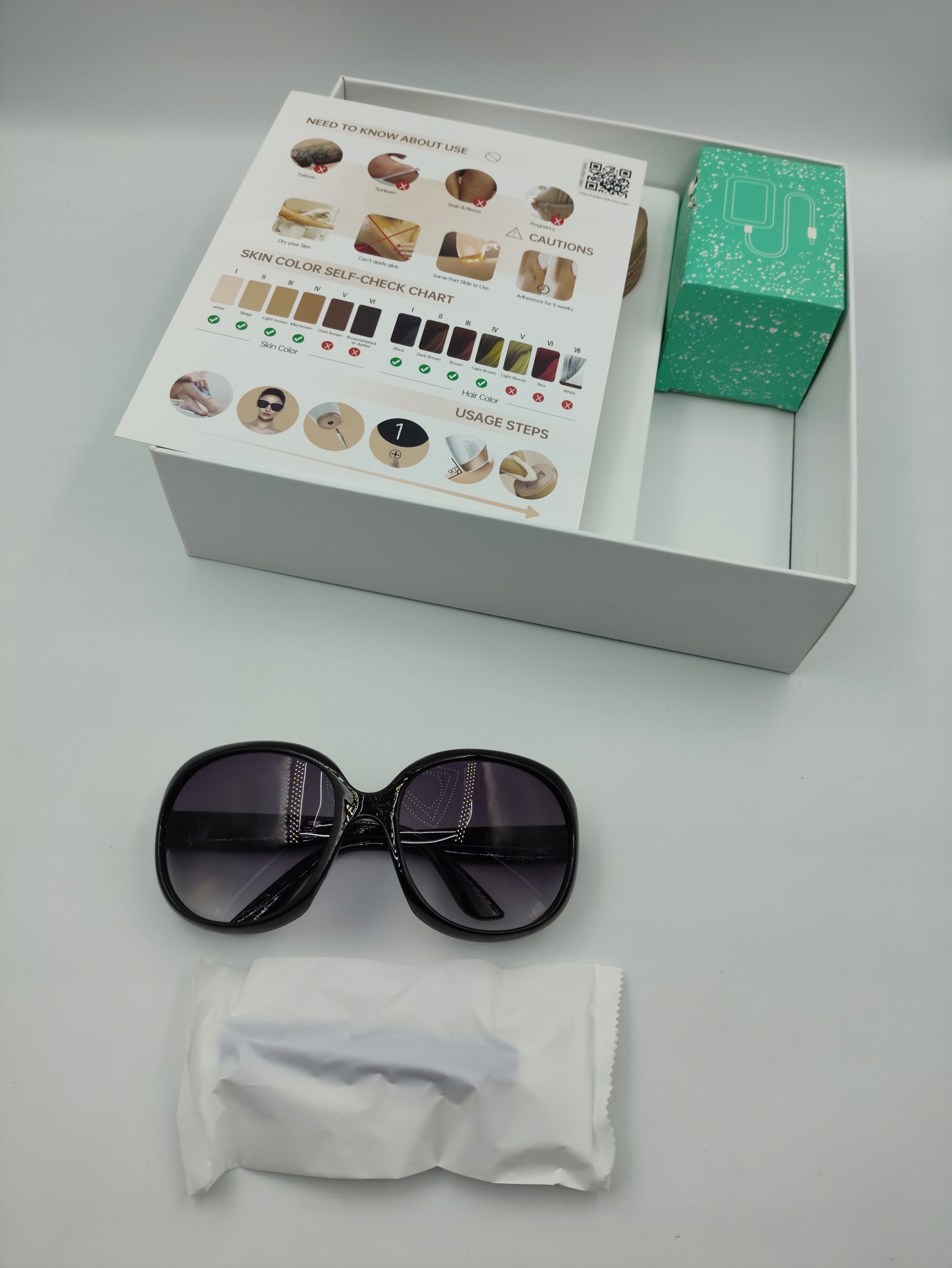 - 999 900 вспышек и последующий уход: это устройство для лазерной эпиляции было модернизировано до 999 900 вспышек, которые можно использовать на протяжении всей жизни. После использования IPL нанесите успокаивающий бальзам (например, алоэ). Избегайте использования скрабов и отбеливающих кремов в течение как минимум 24 часов. Кроме того, следует избегать попадания прямых солнечных лучей в течение более 15 минут после 48 часов.