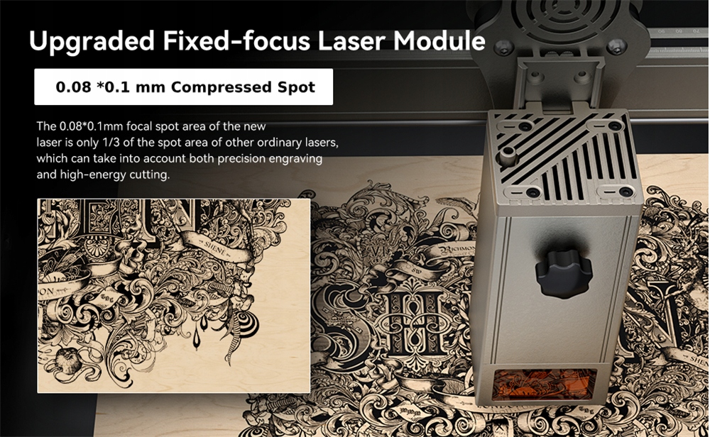●Новое обновление лазерного модуля. Вам наскучило фиксированное фокусное расстояние? Думаете, поддержка с воздуха недостаточно красива? Теперь новый лазерный модуль X30 Pro имеет встроенный модуль фокусировки, не требующий инструментов, и встроенную систему воздушной помощи, без вмешательства проводов, просто и красиво.