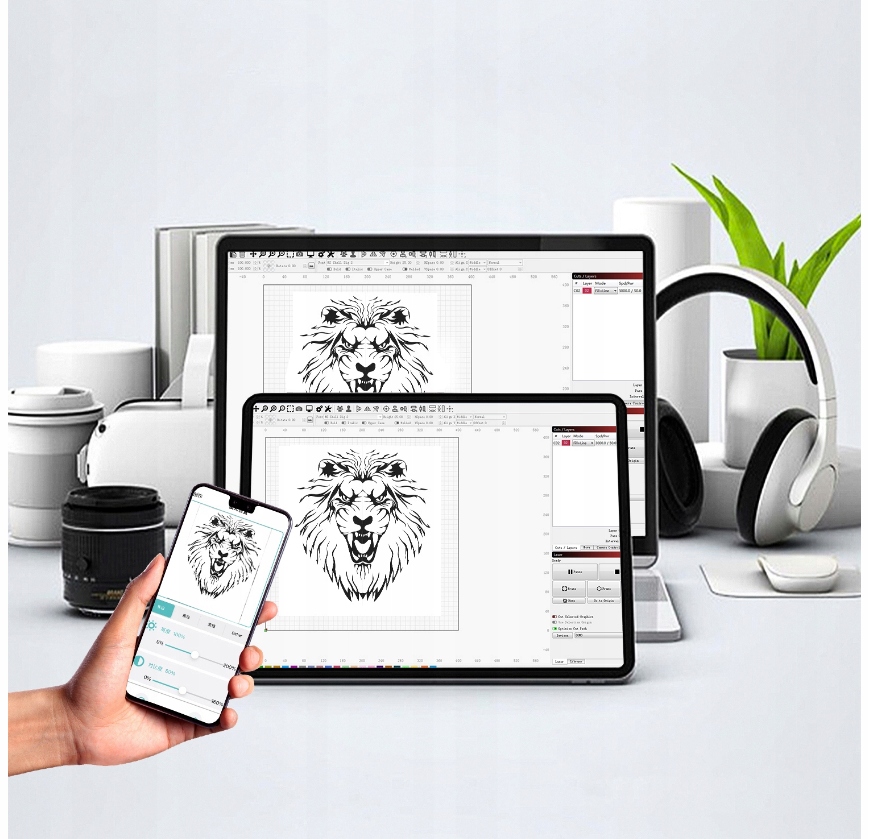 Ray5 10 Вт с экраном 3,5 дюйма обеспечивает поддержку новых функций, таких как несколько способов передачи данных и управление несколькими станками. В других лазерных граверах вы можно гравировать до 1000+ материалов.