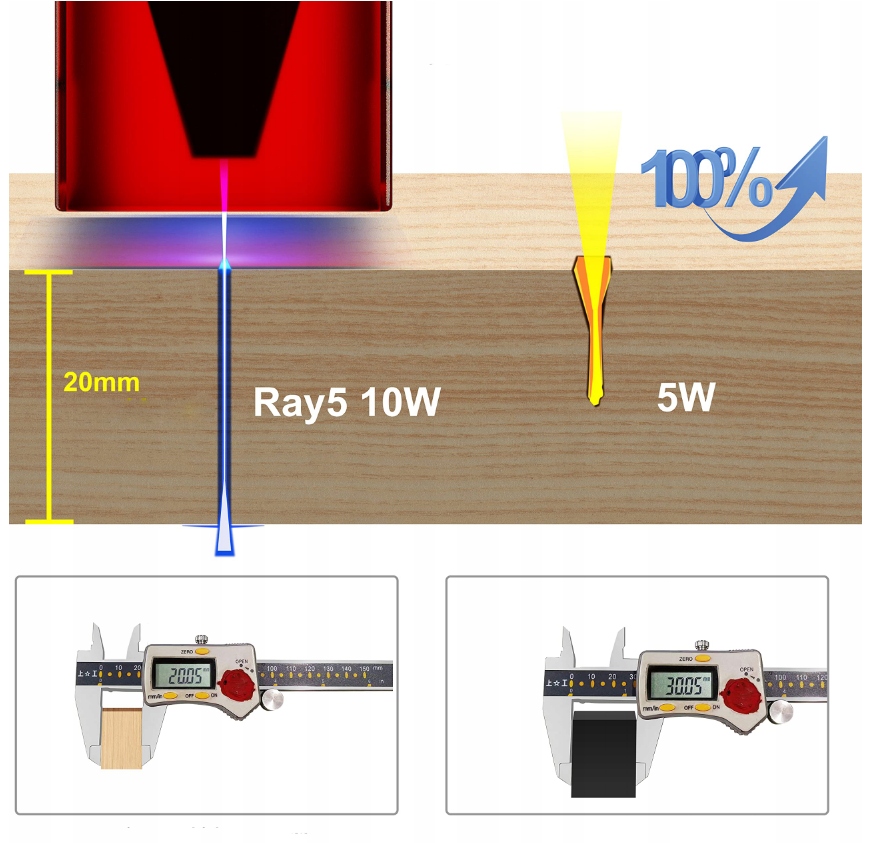 Ray5 использует новейшую версию сжатого лазера, которая представляет собой ультратонкое лазерное пятно, в два раза тоньше обычного лазеры, что делает резку и гравировку Ray5 более конкретной и конкретной, с более тонкими линиями, более четкой текстурой и более изысканной и более красивая графика.