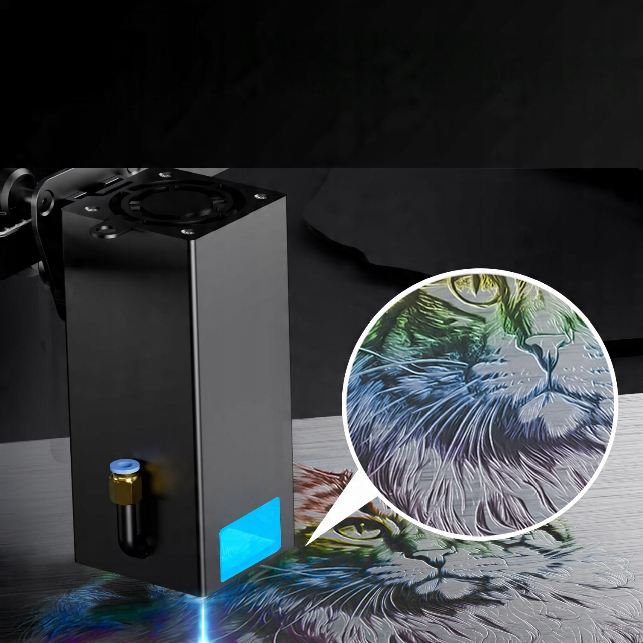Оснащен вытяжным вентилятором и трубкой для ускорения циркуляции воздуха и более полной работы лазера, одновременно устраняя дым и запах.