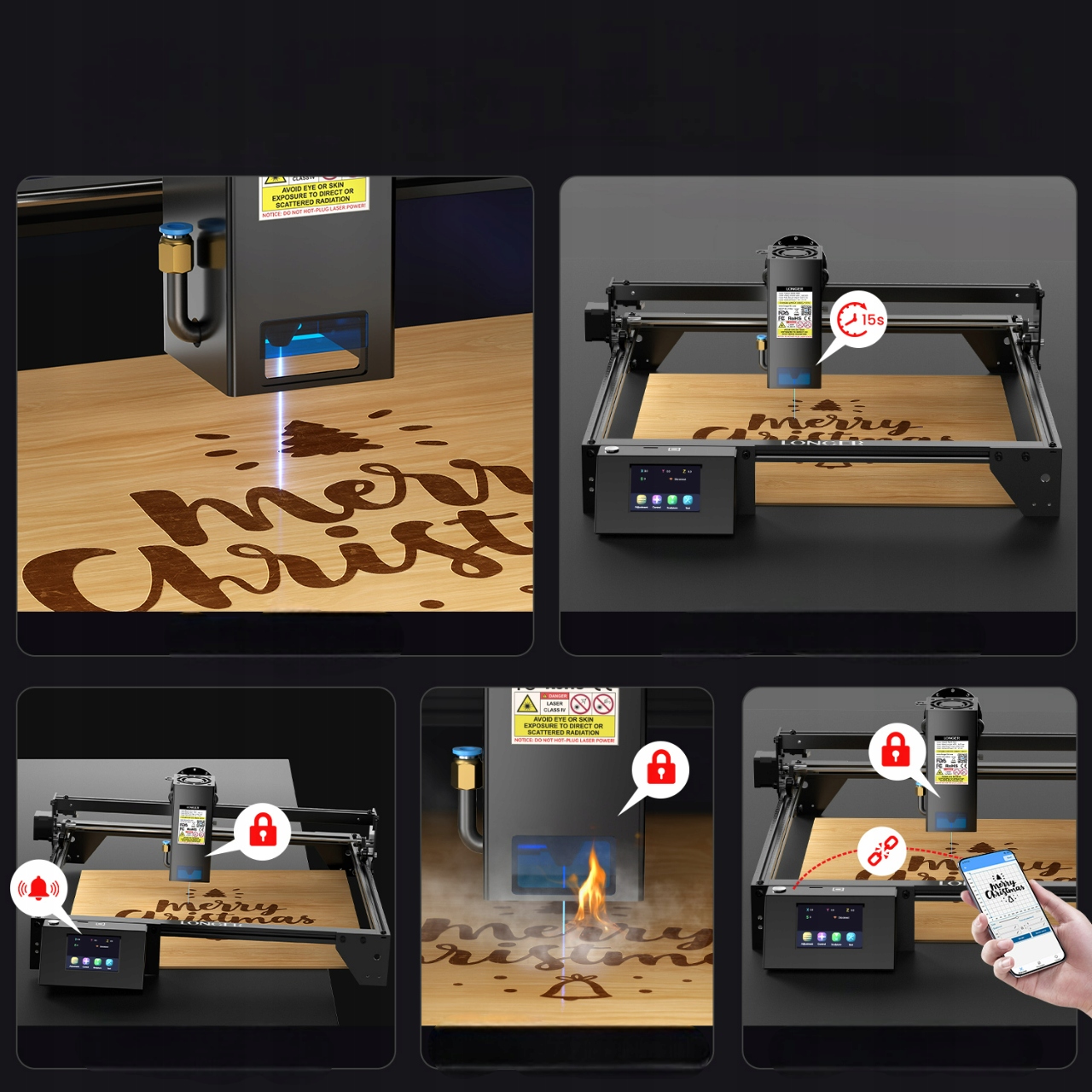 Если лазерный станок перемещается во время использования или происходит несчастный случай, например падение, защита от движения позволяет гравировальному станку автоматически отключиться.