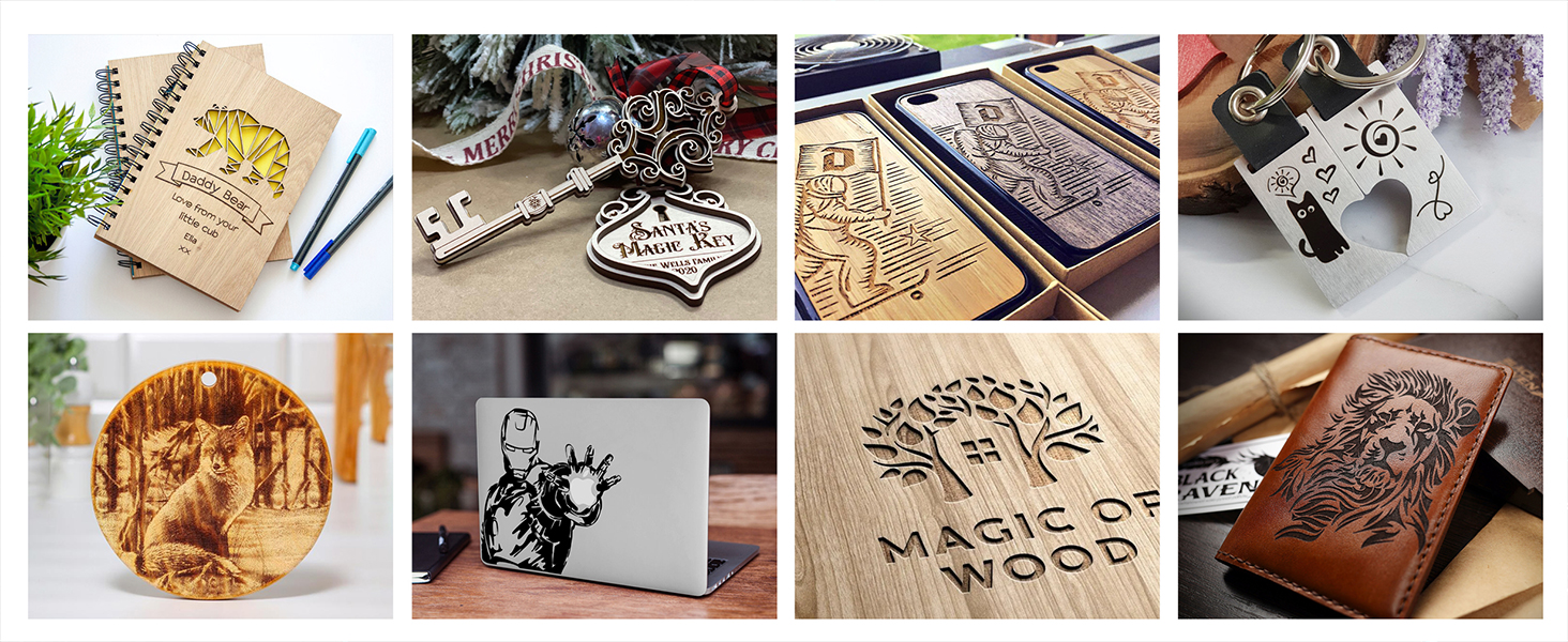 - Мощная резка мощностью 20 Вт позволяет за один проход резать сосну толщиной 0,59 дюйма/15 мм и акрил толщиной 0,31 дюйма/8 мм, даже нержавеющую сталь толщиной 0,002 дюйма/0,05 мм.