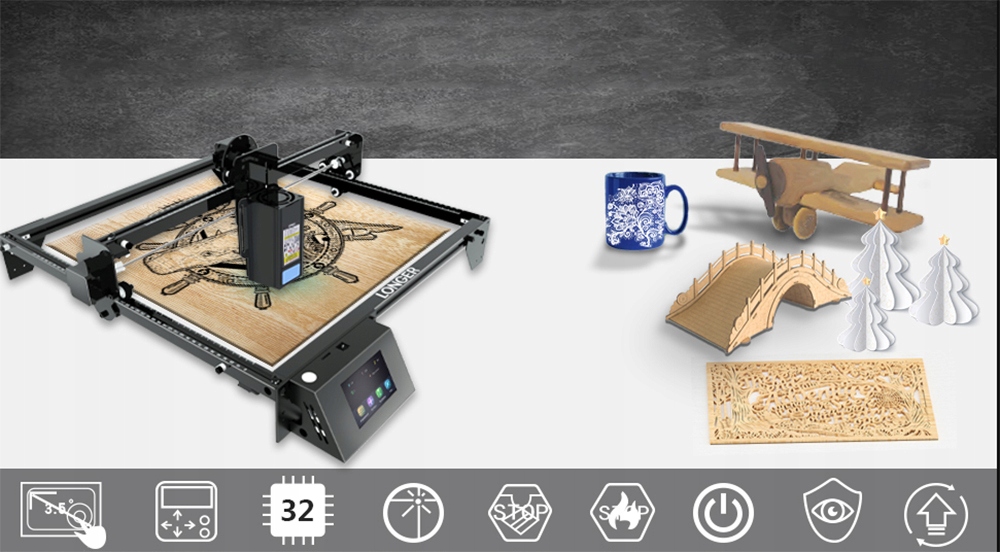 Аварийная остановка лазера срабатывает при обнаружении наклона, пламени, прерывания передачи данных и замерзания лазерной головки в течение более 15 секунд. Кроме того, панорамное стекло фильтра может эффективно фильтровать лазер и защищать ваши глаза, что делает его более безопасным в использовании.