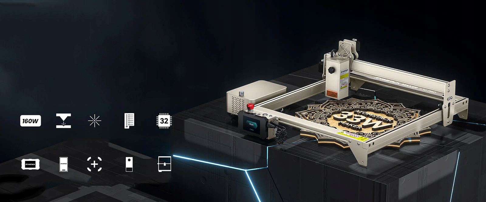 ATOMSTACK S30 Pro оснащен панелью управления терминалом для поддержки автономной гравировки, благодаря чему вы может выполнять гравировку где угодно и когда угодно без ограничений компьютера.