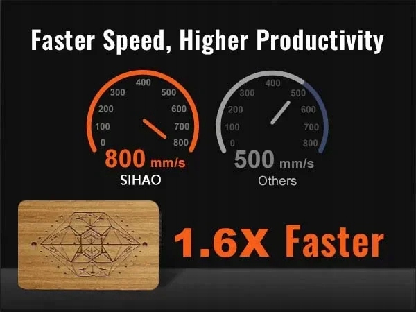0-500 мм/с; Толщина гравюры: 20 мм. Наша лазерная трубка Co₂ обеспечивает мощность 80 Вт за более чем 8000 часов жизни.