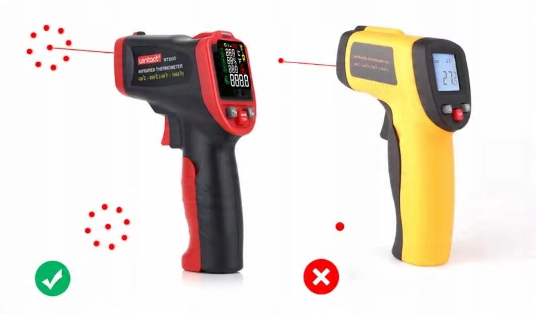 [точный]: благодаря расстоянию до точки 12: 1, этот инфракрасный термометр оснащен 9-точечными лазерами, обеспечивающими лучшее указание, очень быстрое время отклика ниже 500 мс, точность до ± 1,5%.