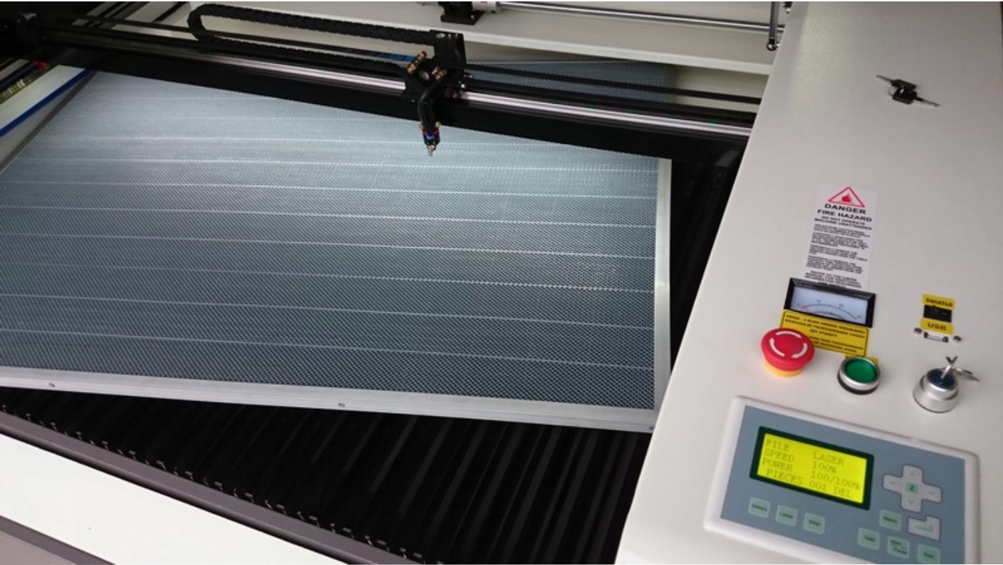 В стоимость лазерного плоттера входят: красная точка, автофокус, электрически опускаемая платформа до 300 мм, сотовая накладка и ножничный стол, два экстрактора выхлопных газов: верхний и нижний с Ящик для отходов, встроенный, активируется для работы компрессора, вентилятора и охлаждения.