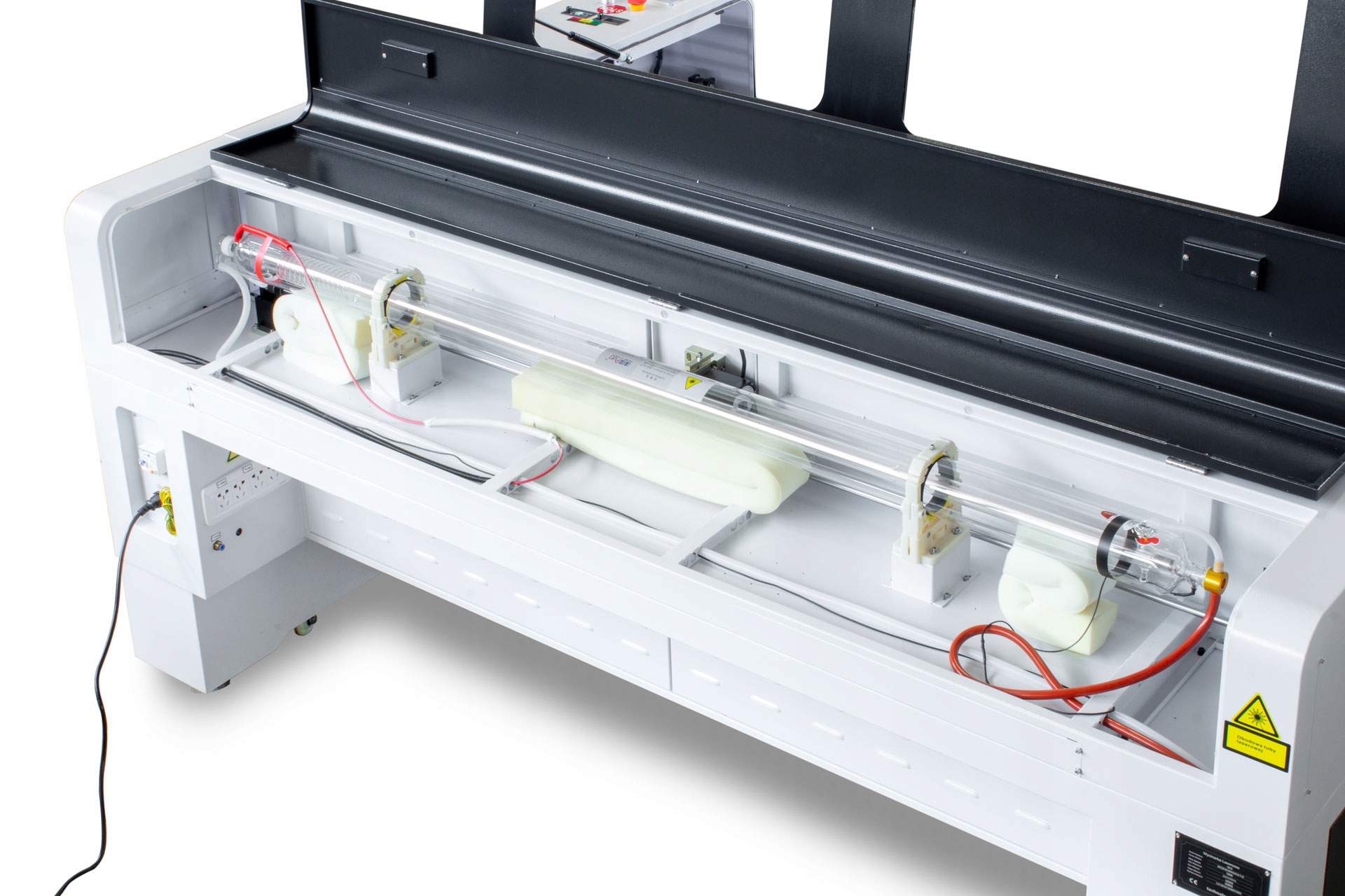 Профессиональный лазер CO2 с рабочей таблицей 1300 мм x 900 мм и трубкой с номинальной мощностью 150 Вт .