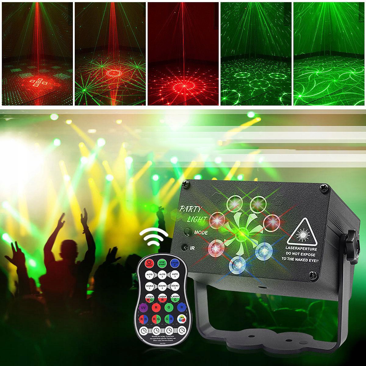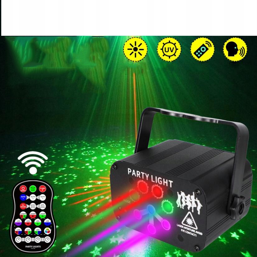 【Многофункциональные светильники для вечеринок】Стробоскоп имеет 8 исходных линз (красный и зеленый и светодиодная подсветка), 240 узоров, цвет и скорость меняются в зависимости от ритма звука/музыки. Удивительная комбинация делает ночь более красочной.