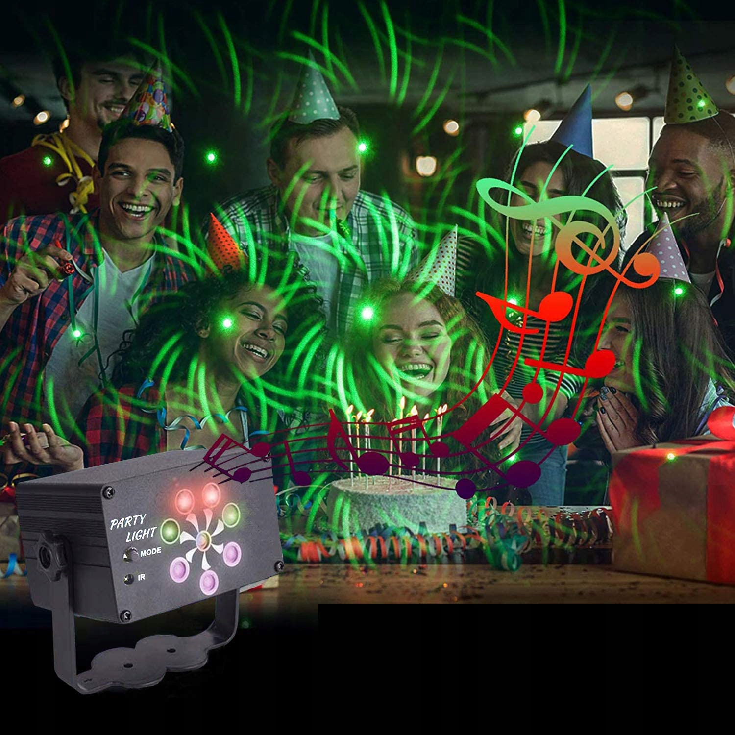 Включение звука: огни вечеринки танцуют под музыку, даже дети смеются, аплодируют или поют, поэтому вам не нужно размещать диско-светильники рядом с динамиком.