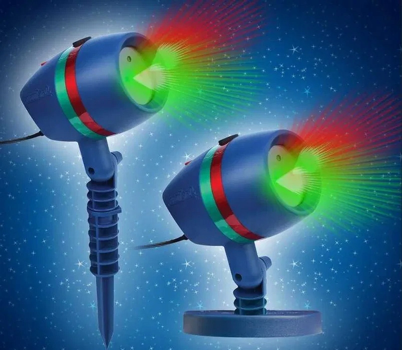 • Он сочетает в себе красный и зеленый лазер и является популярным и впечатляющим декоративным аксессуаром, особенно во время праздников. Это устройство часто используют для подсветки фасадов домов, садов и интерьеров, создавая атмосферную атмосферу в различных случаях, например, в канун Рождества или Нового года.