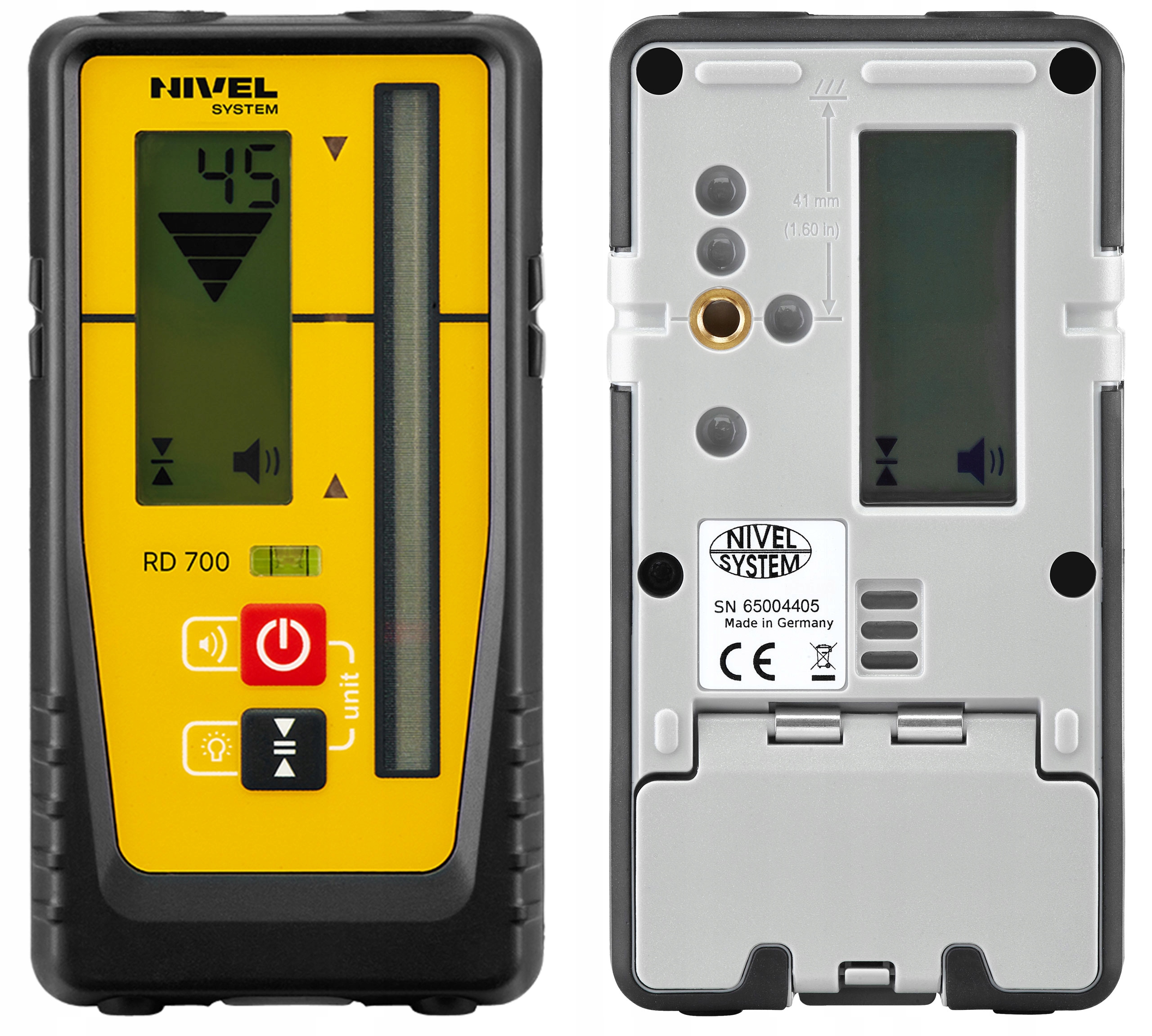 Датчик RD700 работает с поворотными нивелирами с красным и зеленым лазером.
