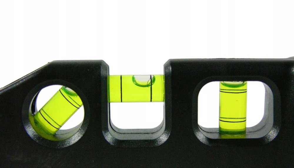 Уровень оснащен тремя уровнями, позволяющими определять вертикальные, горизонтальные и 45-градусные углы