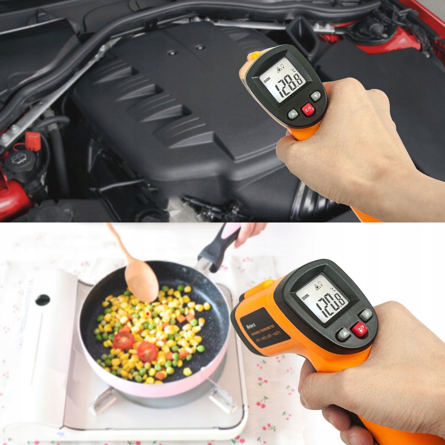 🌡️🌡️ УНИВЕРСАЛЬНОСТЬ: Используйте этот удобный инфракрасный термометр дома и в промышленных условиях. Проверьте температуру духовки или сковороды, измерьте температуру двигателя любого автомобиля и многое другое.