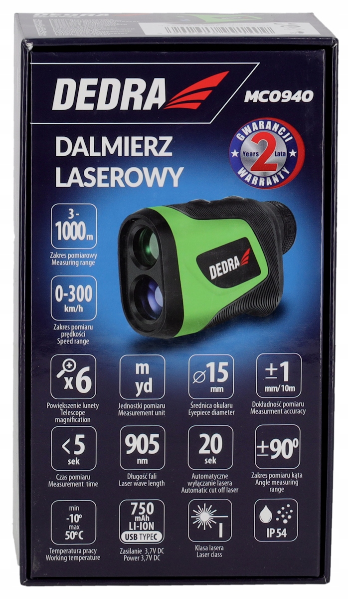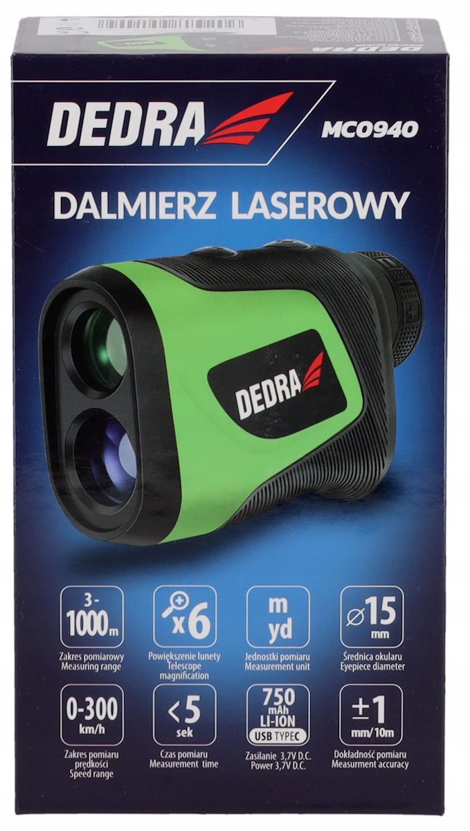 Лазерный дальномер, монокулярные линзы, 1000 м, перезаряжаемая батарея DEDRA USB C