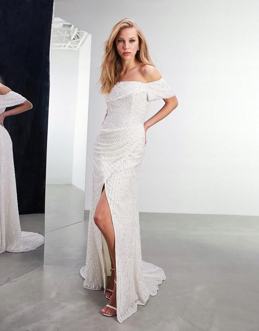 LB6002 40 ВЕСІЛЬНА СУКНЯ З ВІДКРИТИМИ ПЛЕЧАМИ З ПАЙЄТКАМИ Bonprix