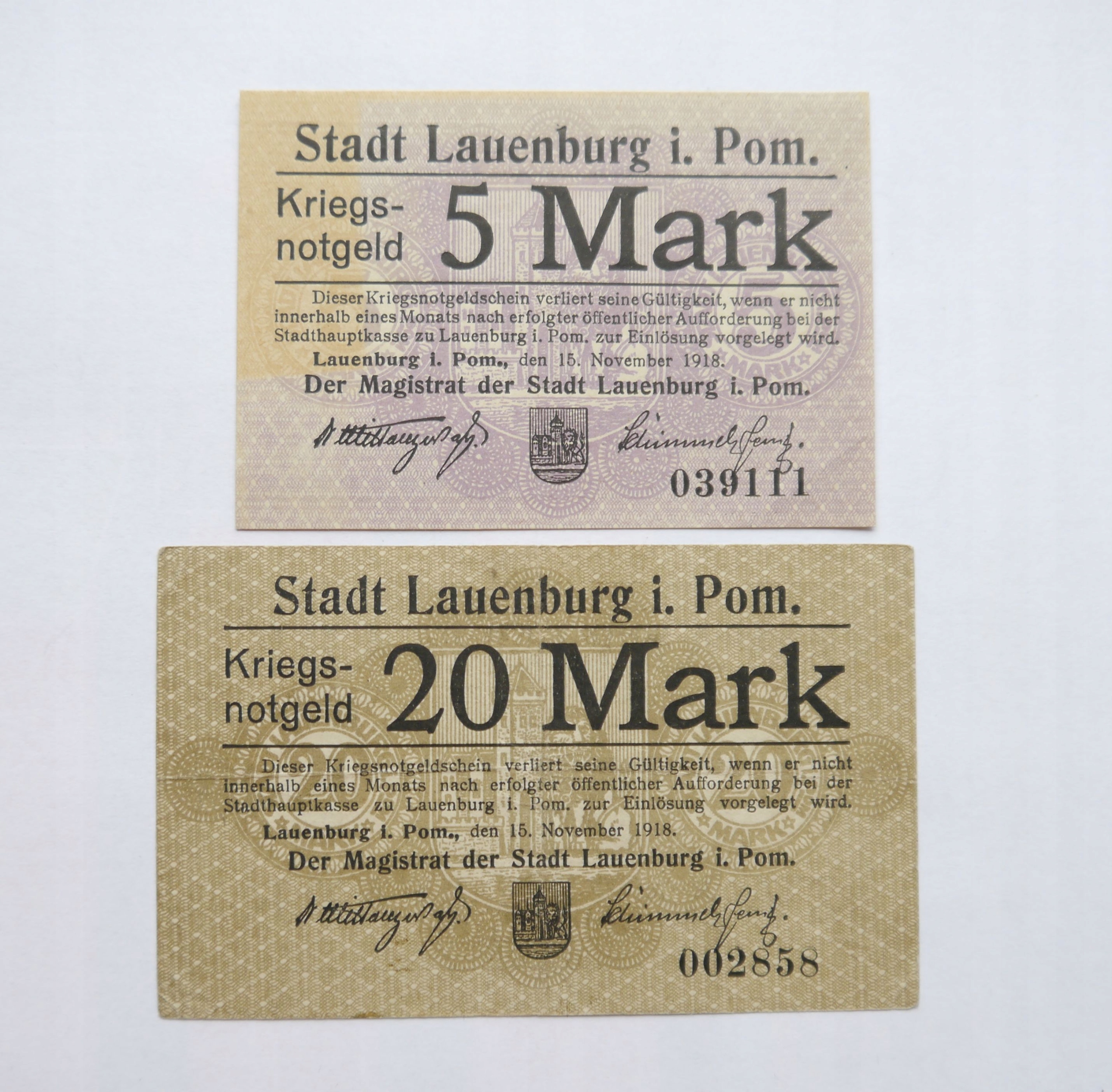 LęBork 5 и 20 Mark 1918 Notgeld от PLN 1