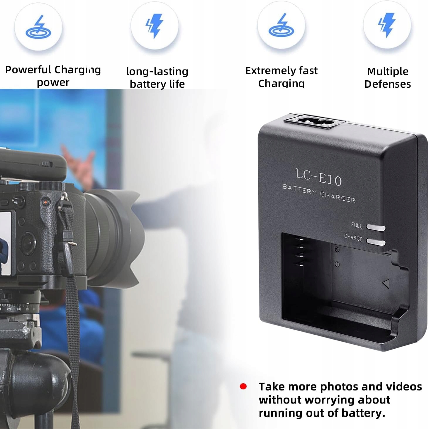 - Зарядное устройство с камерой из материала ABS, легкого и долговечного. Функции со многими уровнями защиты (перезагрузка, короткая замыкания, высокая температура и защита от всплеска). Обеспечивает безопасную, быстрое и эффективное зарядку батареи камеры. Не только эффективно повышает эффективность зарядки и обеспечивает чрезвычайную питание во время длинных сеансов фотографии.