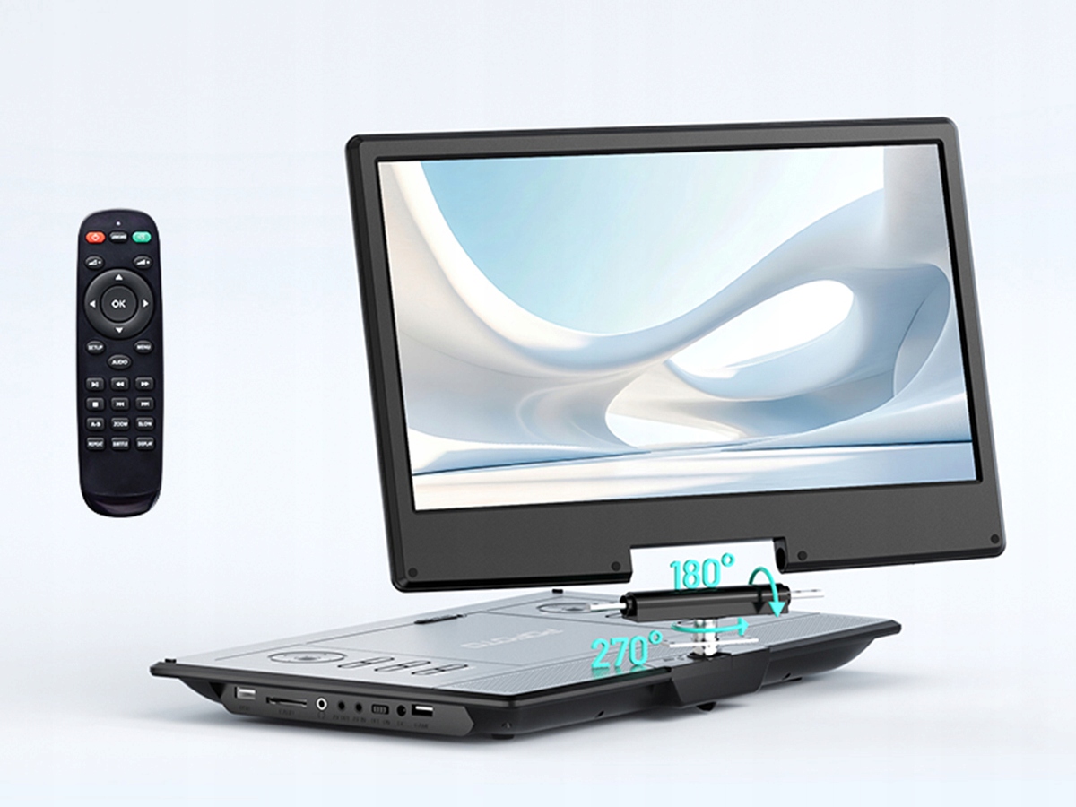 Портативный DVD-плеер POFOTO с диагональю 14,1 дюйма — идеальное решение для дома, автомобиля и путешествий. Оснащенный четким ЖК-экраном 1366×768 с возможностью поворота на 270° и наклона на 180°, он обеспечивает комфортный просмотр из любого положения, сводя к минимуму утомляемость глаз. Маленький и легкий — идеально подходит для поездок, пикников или вечера показы.