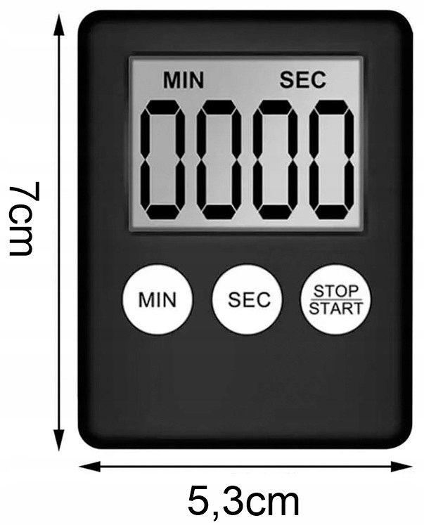 Использовать таймер очень просто и интуитивно понятно. Просто установите время и нажмите кнопку СТАРТ/СТОП, чтобы начать обратный отсчет. Имеет временной диапазон от 00:01 до 99:99 (мм:сс).