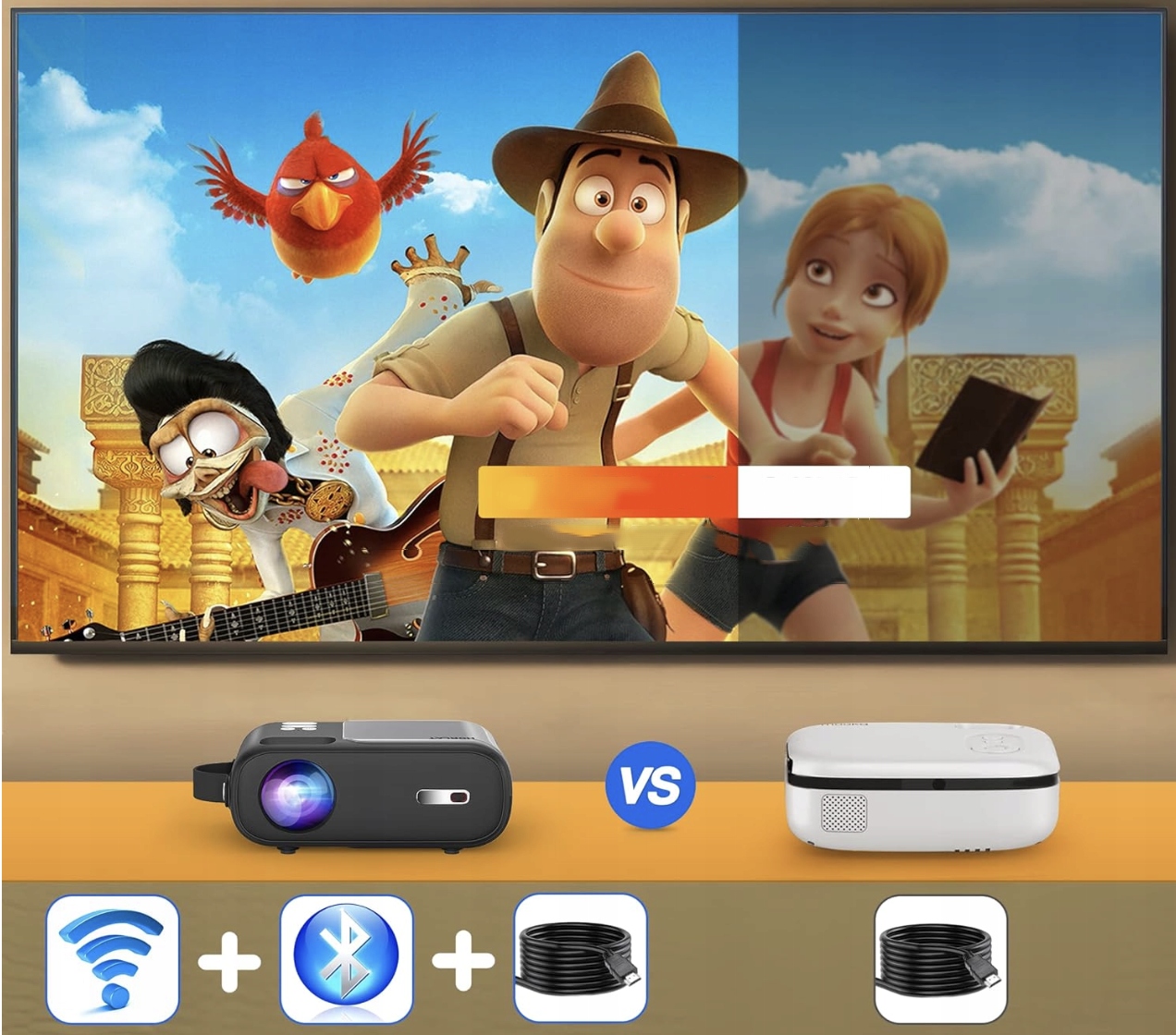 Кинопроектор HORLAT можно легко подключить к различным мультимедийным устройствам с помощью портов: