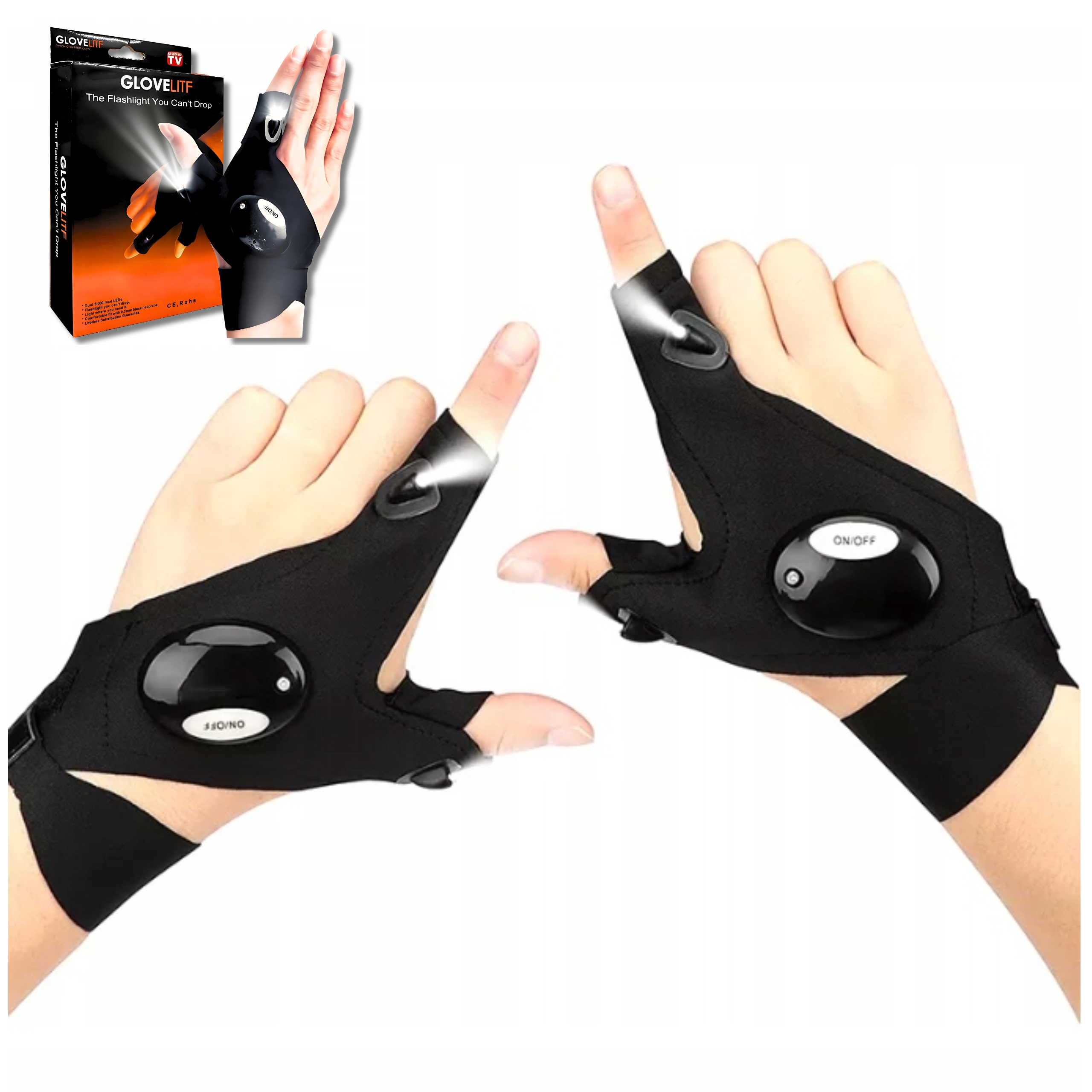 НАБОР ИЗ 2 ПЕРЧАТОЧНЫХ ФОНАРИКОВ СО СВЕТОДИОДНЫМИ СВЕТОДИОДАМИ ДЛЯ ВЫЖИВАНИЯ, 2 ЛАМПЫ