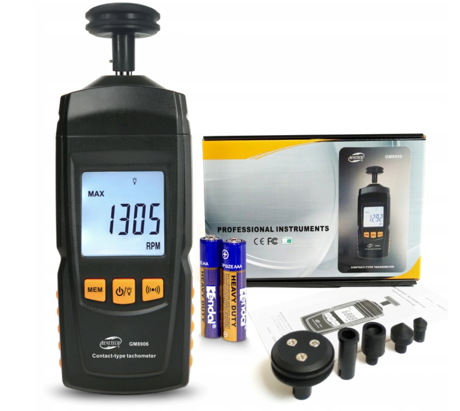 Тахометр — полезное устройство в машиностроении промышленность. Он используется для измерения скорости вращения, линейной скорости и частоты электродвигателей, роторов, лопастей, роликов и т. д.