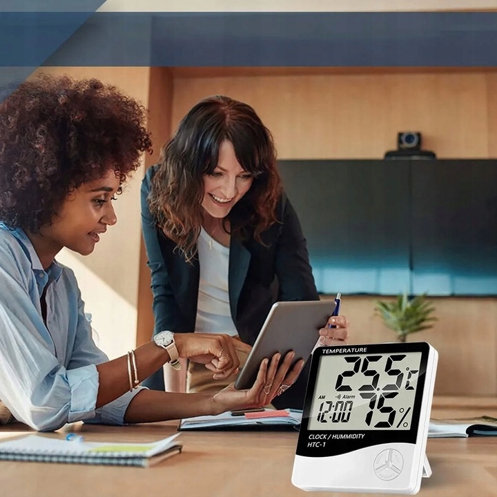Это незаменимый прибор для всех, кто ценит контроль над условиями в помещении. Оснащен точным датчиком температуры и влажности, который точно измеряет текущие значения в помещении. Устройство отображает температуру в градусах Цельсия или Фаренгейта в зависимости от предпочтений пользователя. У него также есть подставка, которую можно разместить на столе или другой плоской поверхности. Встроенное отверстие также позволяет повесить устройство на стену, поэтому оно занимает очень мало места в комнате.