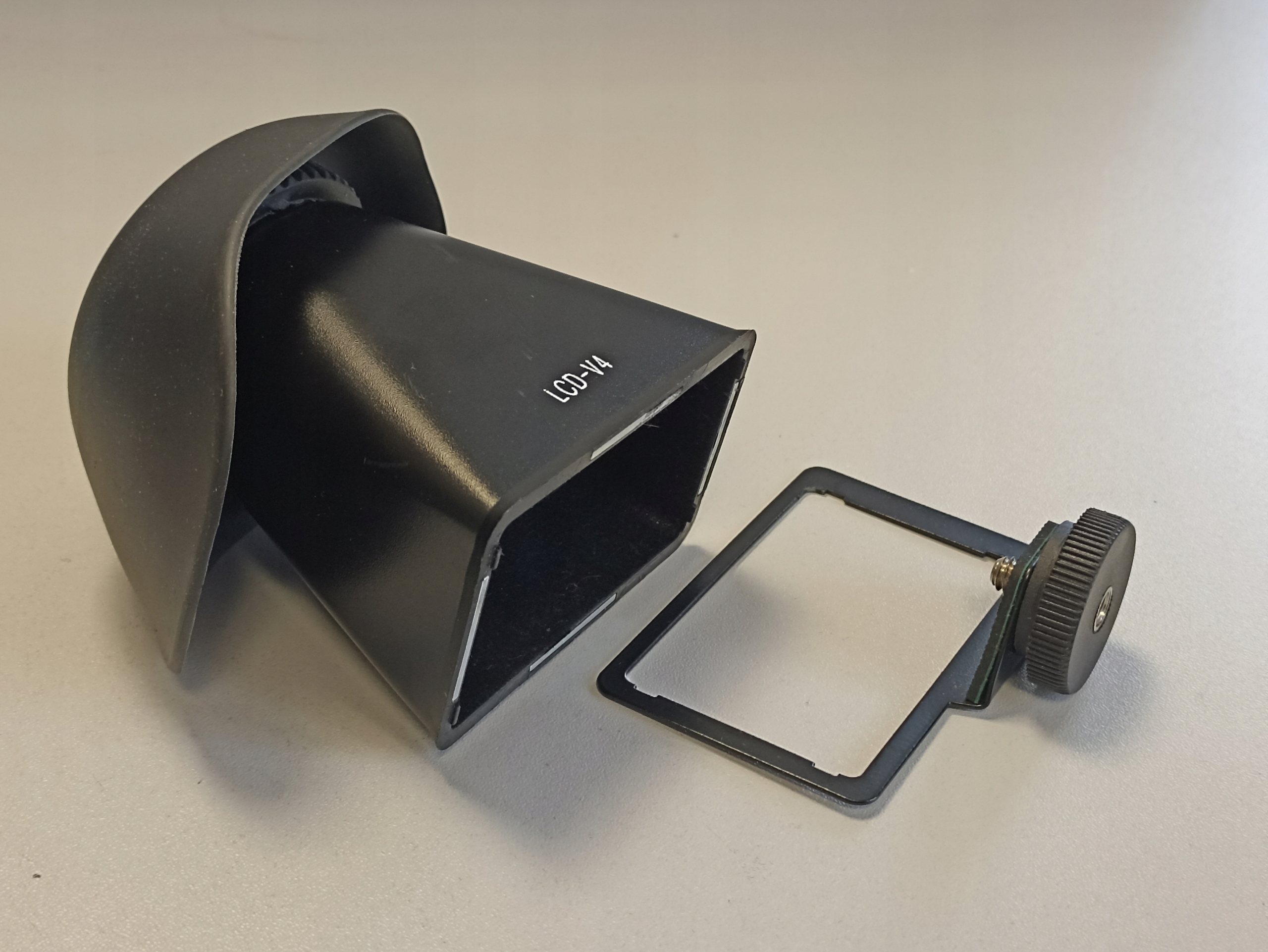 LCDVF V4 — ЖК-видоискатель версии 4 — это оптическое устройство, используемое для увеличения изображения на экране. Прикручиваем раму к штативному гнезду, которое в свою очередь является основанием для элемента, крепящегося с помощью 4-х магнитов. Для тех, кто привык смотреть через видоискатель. Состояние б/у. Оригинальная коробка в комплекте.