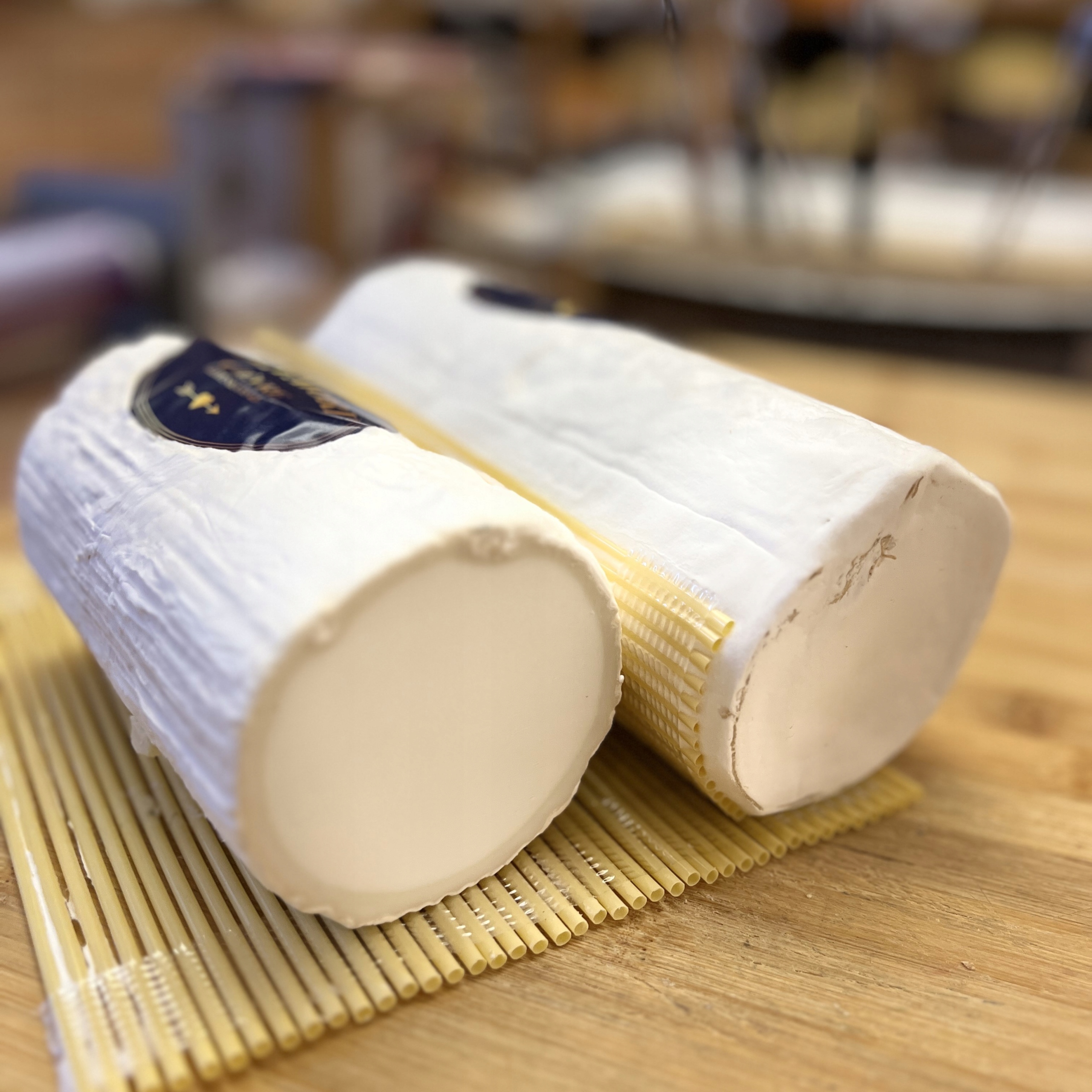Нежный, свежий точильный камень из козьего сыра, покрытый белым пухом плесень.