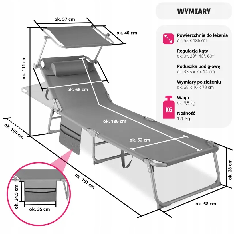LEŻAK ALIMINIOWY SKŁADANY LEŻANKA Z DASZKIEM