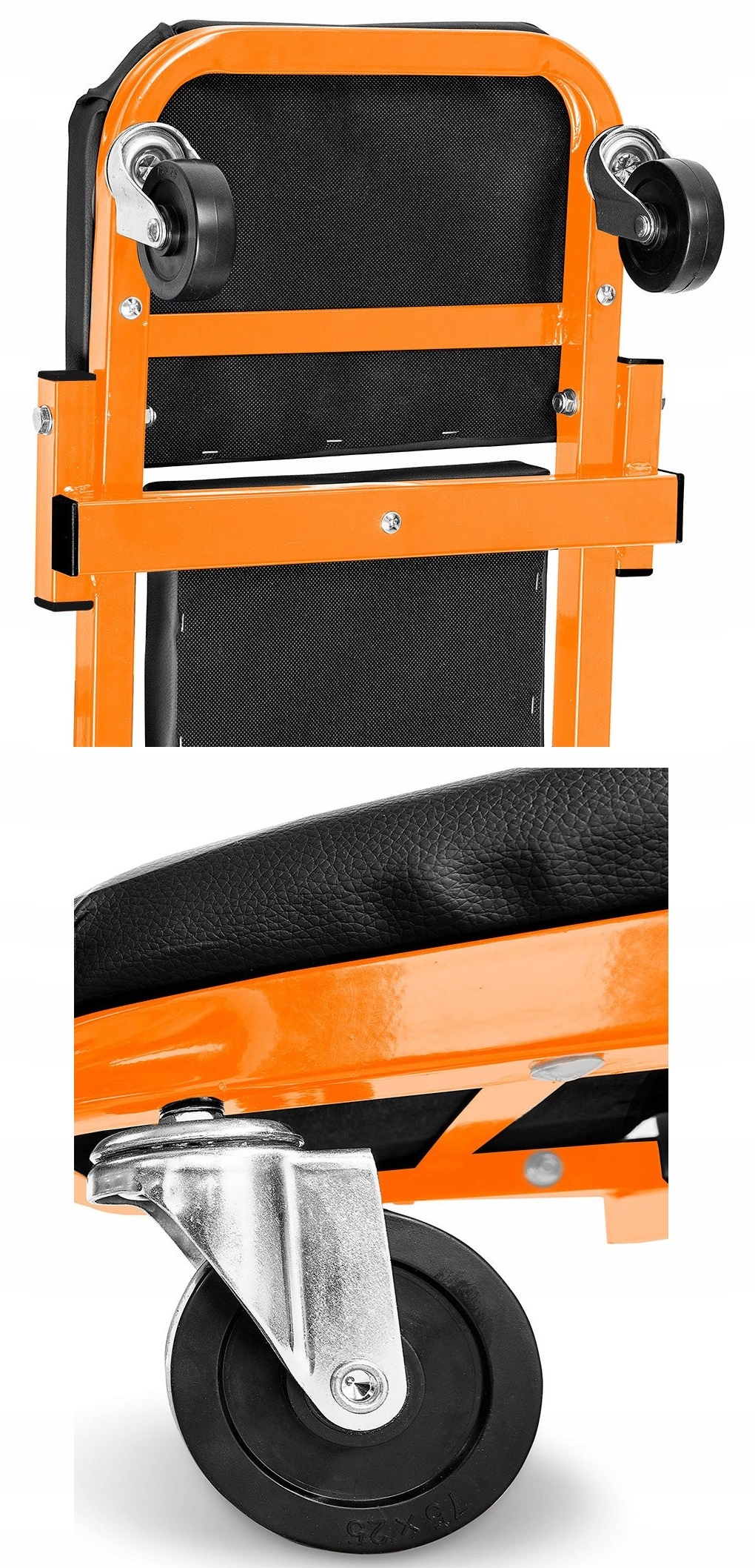 Модель — это улучшенная версия кушетки , имеющая ряд новых функций, призванных обеспечить еще больший комфорт и долговечность. Он оснащен дополнительным усилением под подголовником и под спинкой, что повышает устойчивость и долговечность конструкции. Колеса из полипропилена, покрытые термопластичным полиуретановым эластомером, маслостойкие и прекрасно гасят вибрации. Их больший диаметр (75 мм) позволяет легко передвигаться по мастерской. Дополнительные шайбы под винты крепления колес обеспечивают прочное соединение и долговечность.
