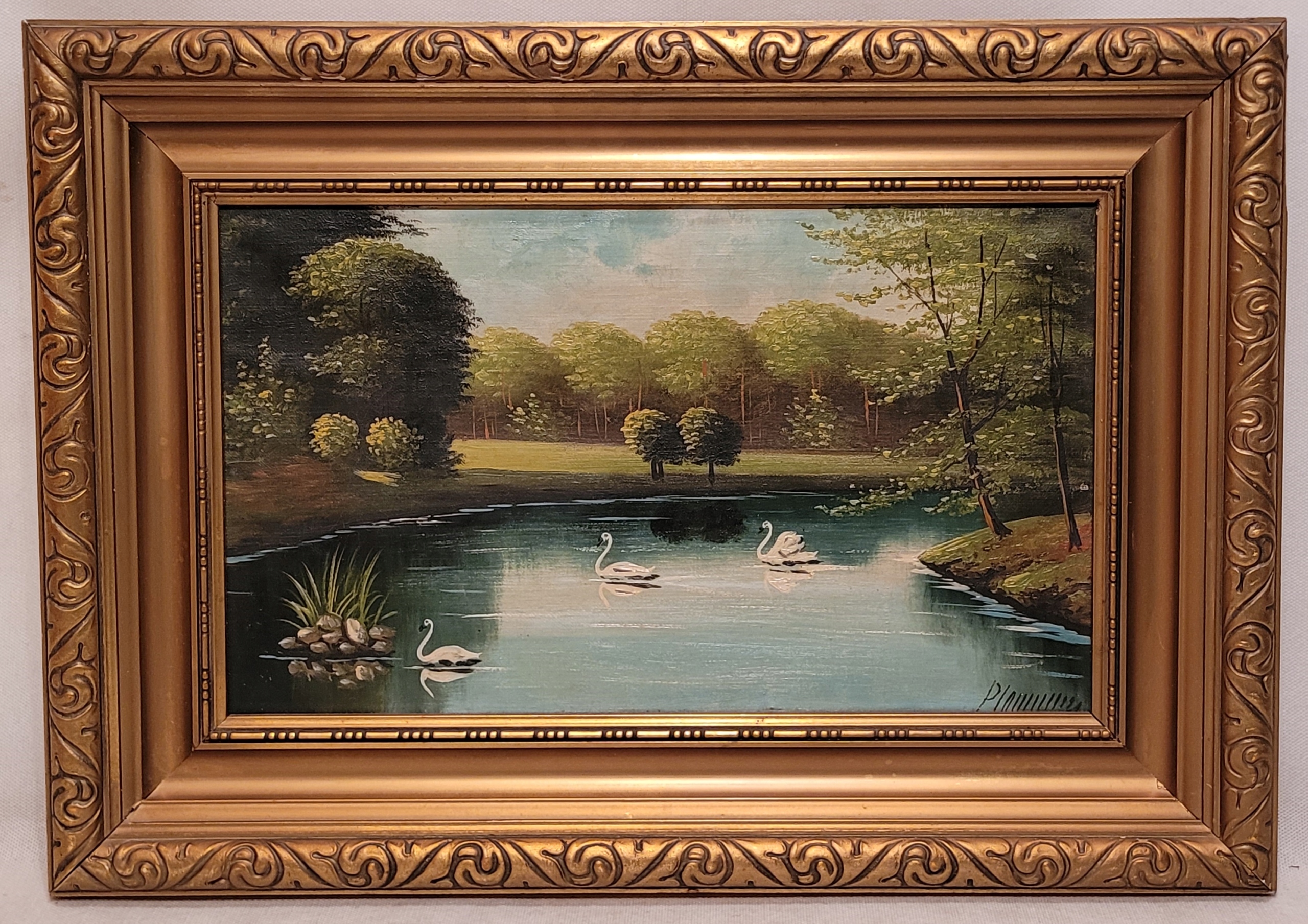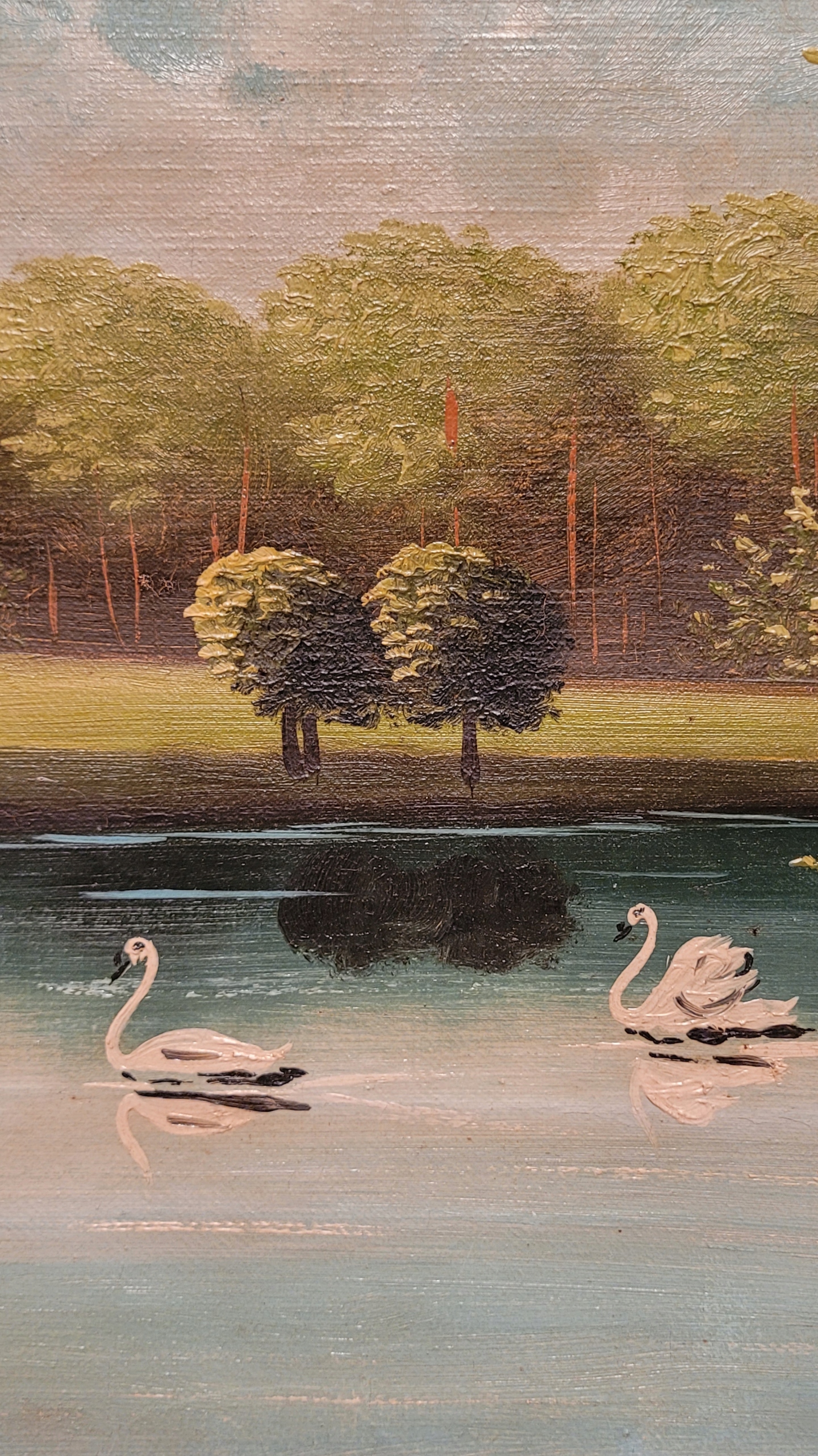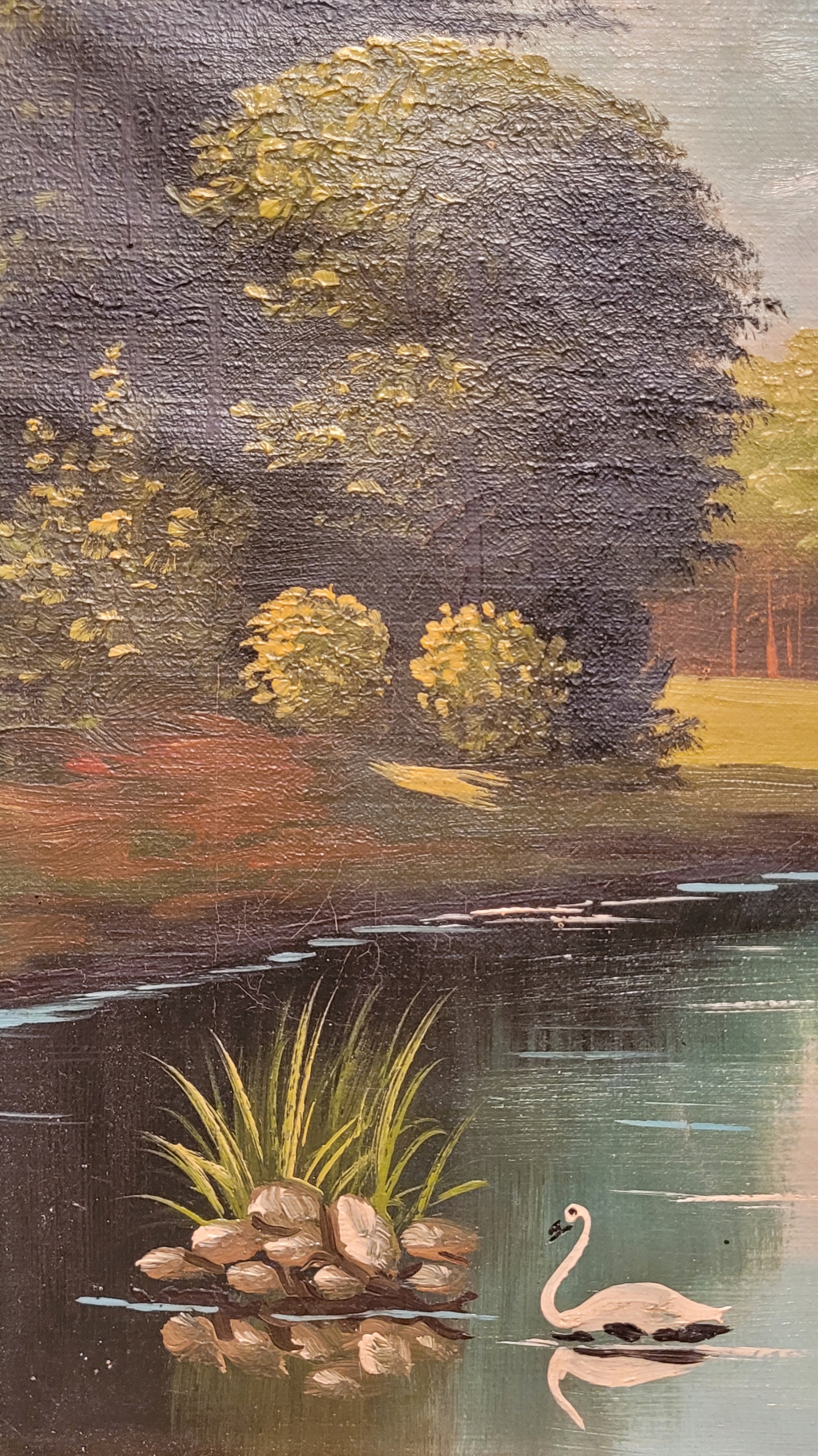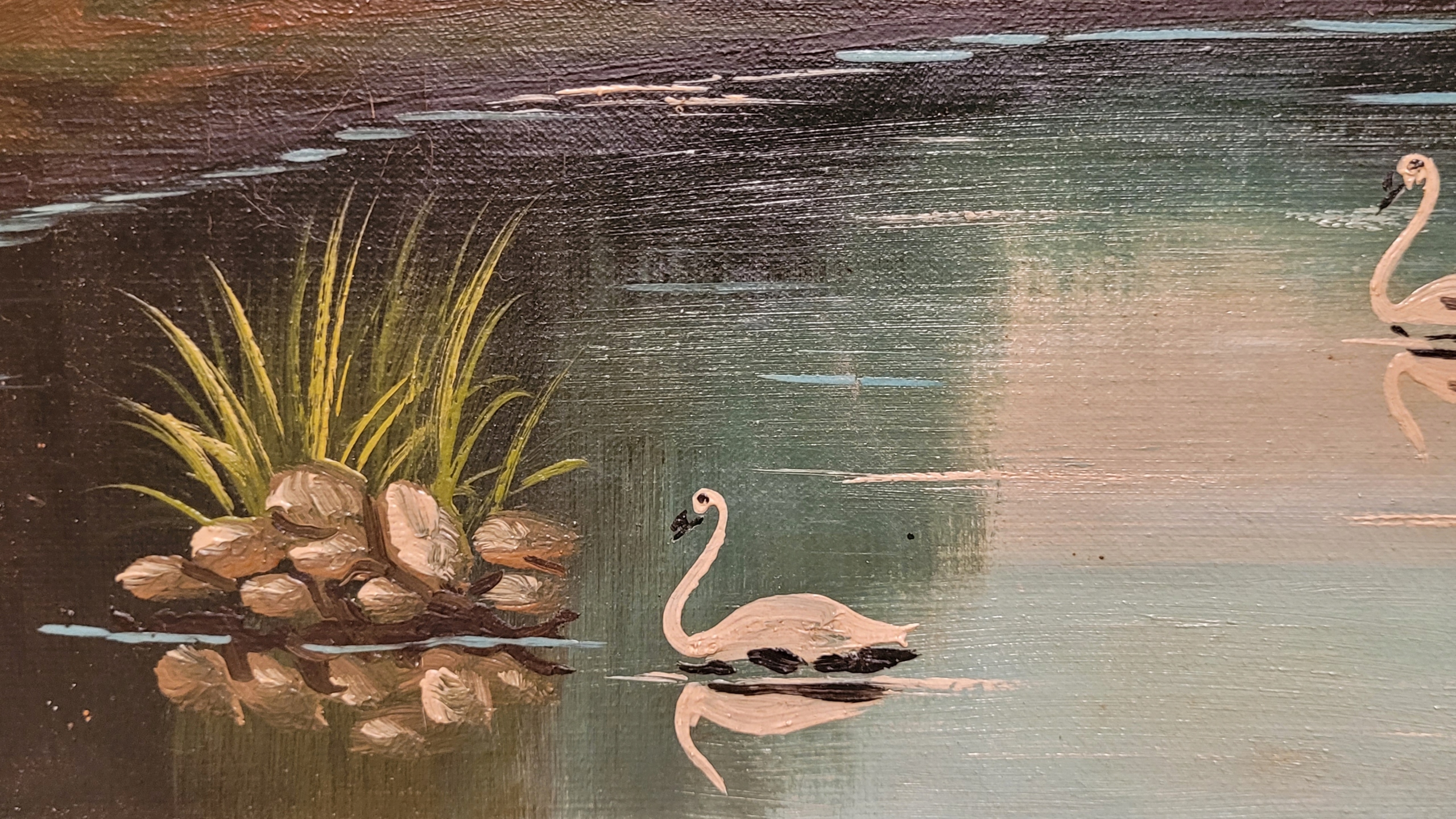 Предмет продажи - красивая, старинная картина маслом "ЛЕБЕДИ НА ПРУДЕ".
