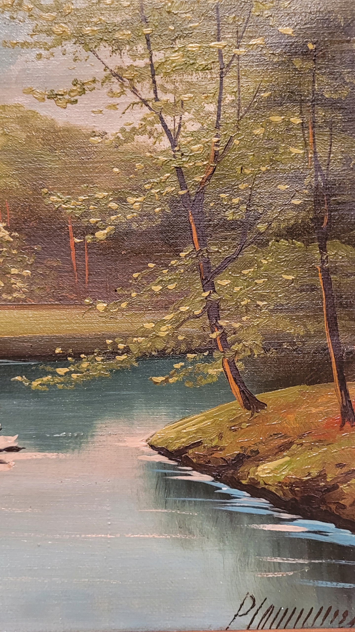 "ЛЕБЕДИ НА ПРУДЕ", старая, подписанная картина маслом.