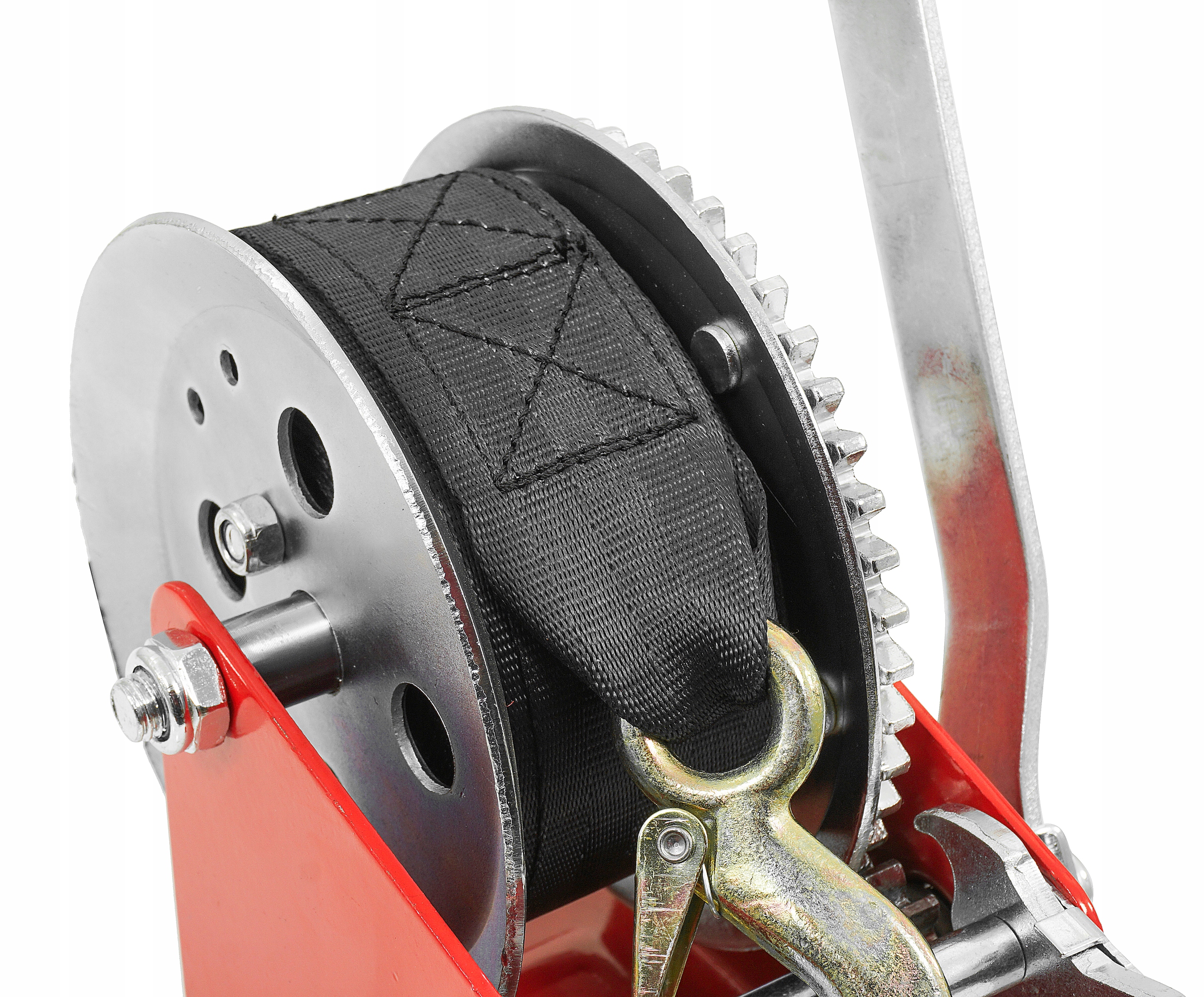 Это лебедка с прочной стальной конструкцией, предназначенная для подъема небольших лодок, гидроциклов, квадроциклов, небольших транспортных средств и т. д. Имеет легкодоступный рычаг изменения направления вращения: свернуть/развернуть. Лебедка изготовлена из качественных материалов, обладающих соответствующей прочностью – конструкционной стали и литого крюка с возвратной пружиной. Устройство управляется рукояткой вместе с храповым механизмом, эти свойства позволяют поднимать и опускать предметы. Его можно использовать, среди прочего, для растягивания заборных сеток, связывания, крепления и вытягивания тяжелых и крупных предметов.