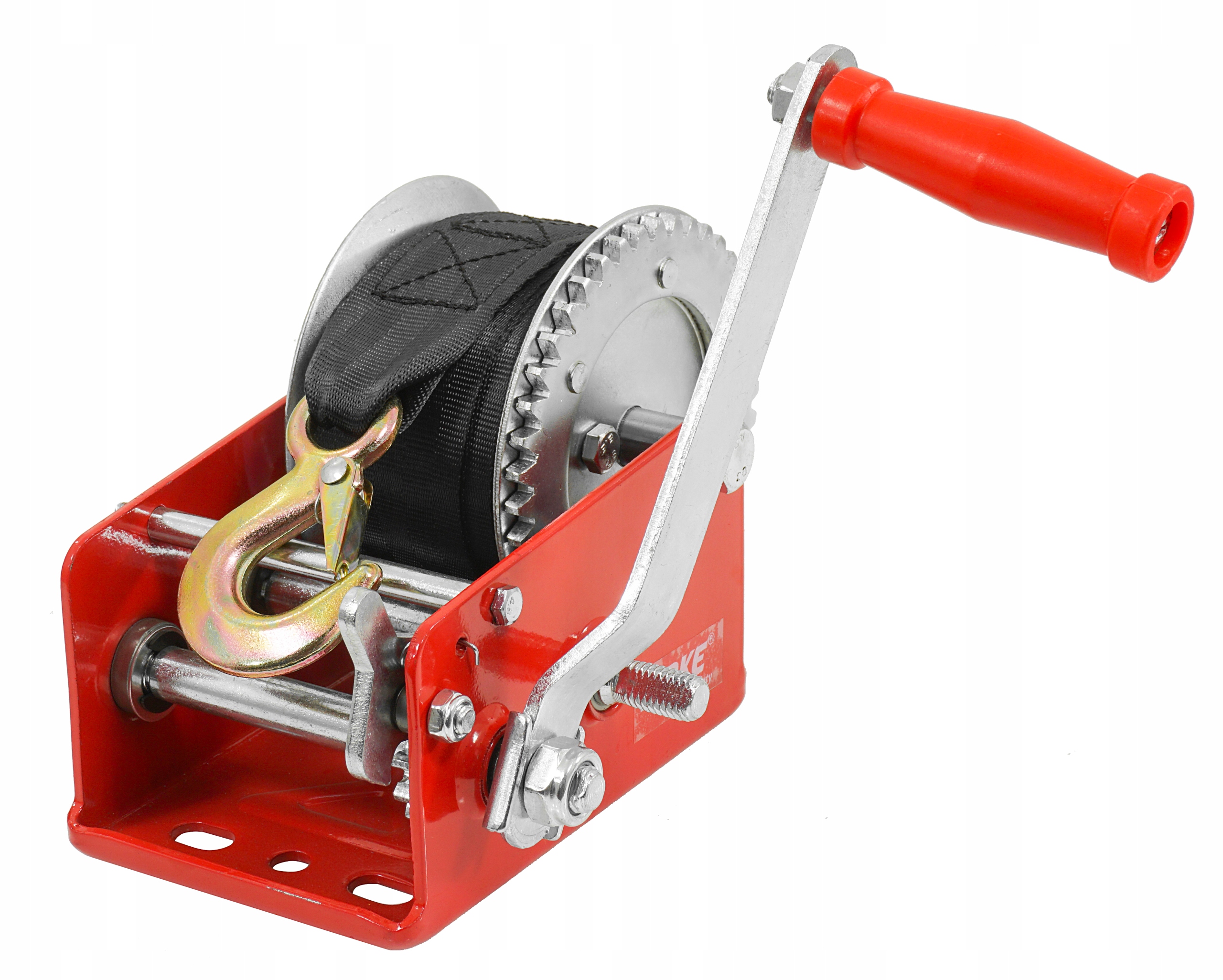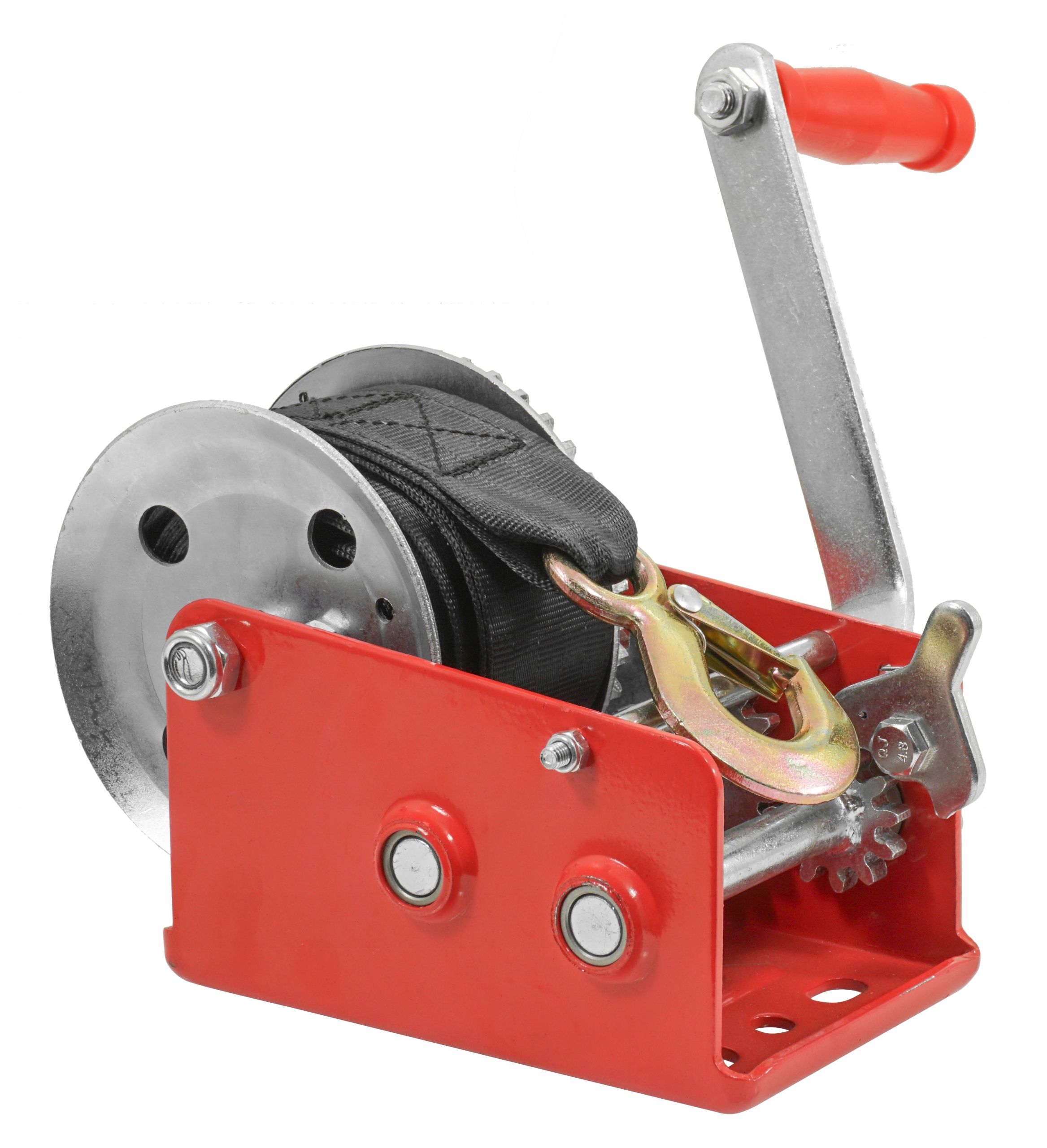 Это лебедка с прочной стальной конструкцией, предназначенная для подъема небольших лодок, гидроциклов, квадроциклов, небольших транспортных средств и т. д. Имеет легкодоступный рычаг изменения направления вращения: свернуть/развернуть. Лебедка изготовлена из качественных материалов, обладающих соответствующей прочностью – конструкционной стали и литого крюка с возвратной пружиной. Устройство управляется рукояткой вместе с храповым механизмом, эти свойства позволяют поднимать и опускать предметы. Его можно использовать, среди прочего, для растягивания заборных сеток, связывания, крепления и вытягивания тяжелых и крупных предметов.