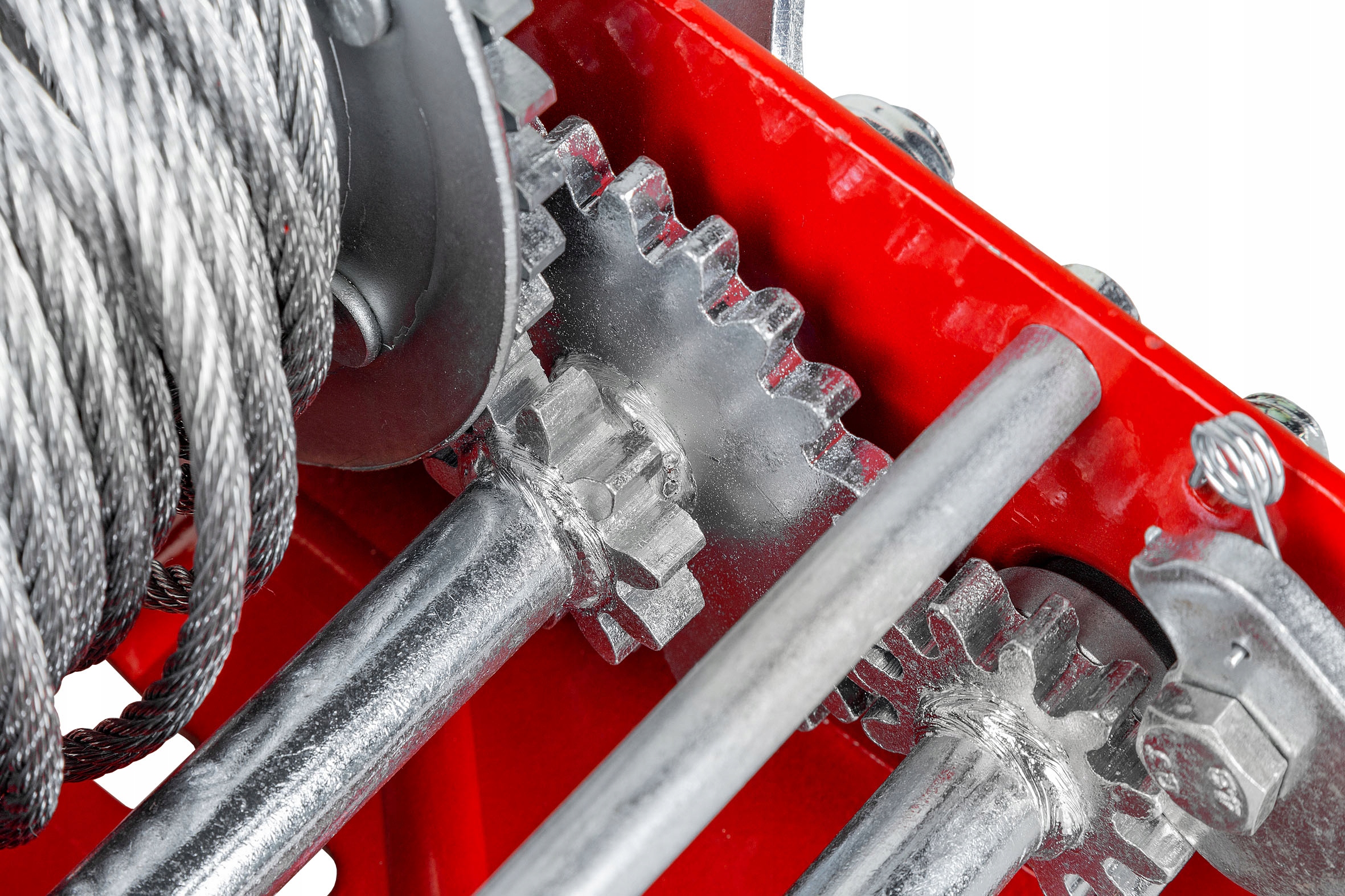 Безопасность при работе обеспечивается прочным храповым механизмом и утолщенной усиленной шестерней. Это решение гарантирует высокую жесткость всей конструкции, а также высокую конструктивная надежность. Благодаря использованию подвижных двусторонних собачки легко убираются как с помощью механизма, так и также используйте его для постепенного опускания одного зуба звездочки за раз. Кроме того, вы можете установить переключатель в разблокированное положение, таким образом пользователь может свободно маневрировать веревкой. Это заставляет работу работать удобно, эффективно и безопасно.