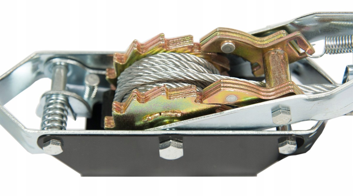 Лебедка изготовлена из качественных материалов, обладающих соответствующей прочностью – конструкционная сталь, литые крюки с возвратными пружинами.