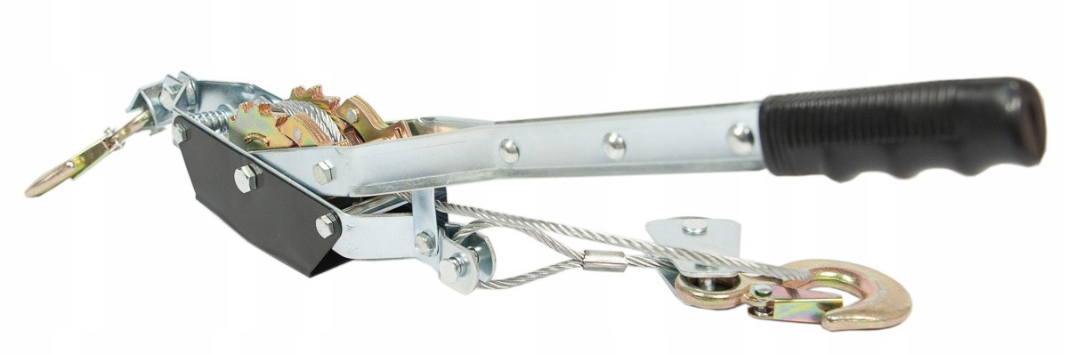 Лебедка канатная (лебедка, протяжной станок, натяжитель) с ручным приводом предназначена для транспортировки грузов в горизонтальной плоскости. Он состоит из стального троса и рычага, приводящего в движение барабан с храповым механизмом с передаточным числом 15:1.