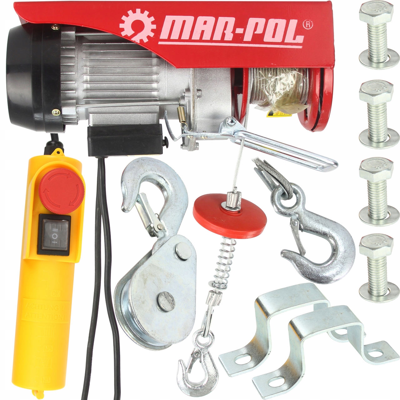 Строительная лебедка с широким спектром универсального применения в гараже, мастерской или на строительной площадке. Лебедка имеет высокий стандарт безопасности, благодаря дистанционному управлению с аварийной кнопкой, мощному, экономичному двигателю (550 Вт), тормозу для безопасной остановки груза на заданной мощности и автоматическому выключателю с немедленной остановкой. для безопасного подъема и опускания тяжелых предметов, таких как двигатели, строительные материалы, тяжелые инструменты и т. д. Лебедка очень проста в использовании.