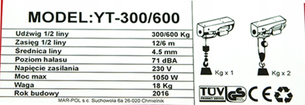 Лебедка имеет высокий стандарт безопасности благодаря пульту дистанционного управления с кнопкой аварийного включения, мощному и эффективному двигателю (1050 Вт), тормозу для безопасной остановки нагрузки с желаемой производительностью и автоматическому выключателю с немедленной остановкой.