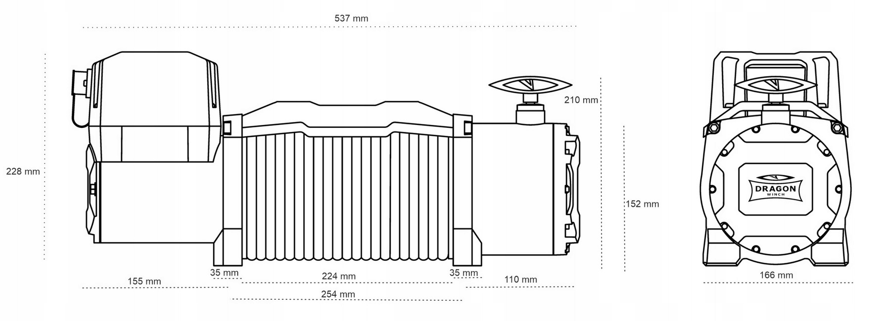 - Размеры лебедки (ДхШхВ): 537 мм x 166 мм x 228