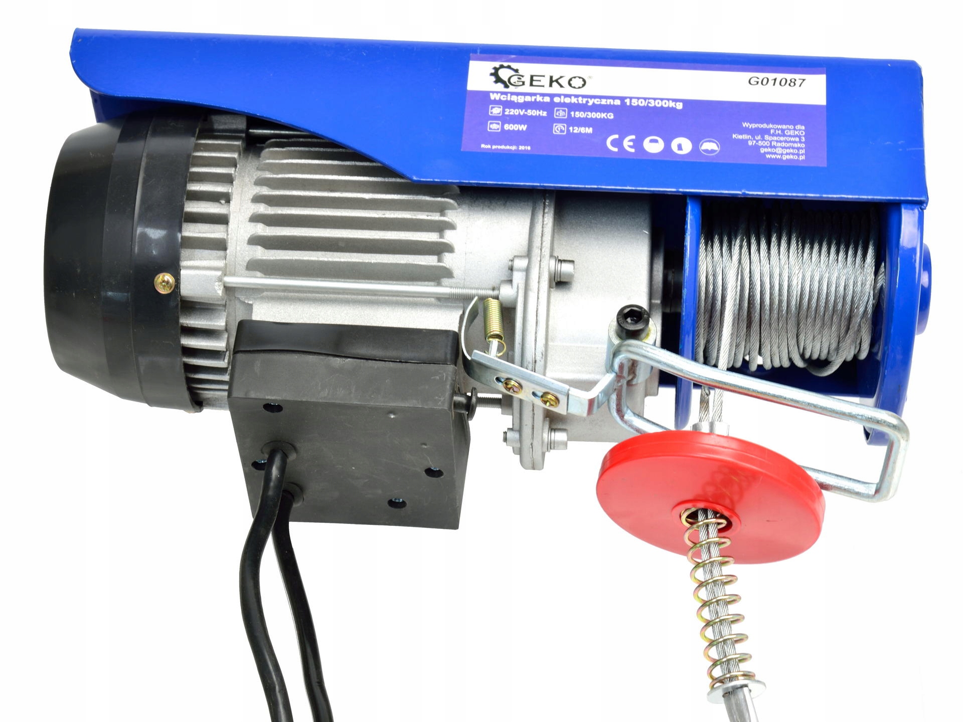 Профессиональная электрическая канатная лебедка/лебедка от польского бренда GEKO. Лебедка очень прочная и прочная, ее мощность составляет 600 Вт, а грузоподъемность до 300 кг.