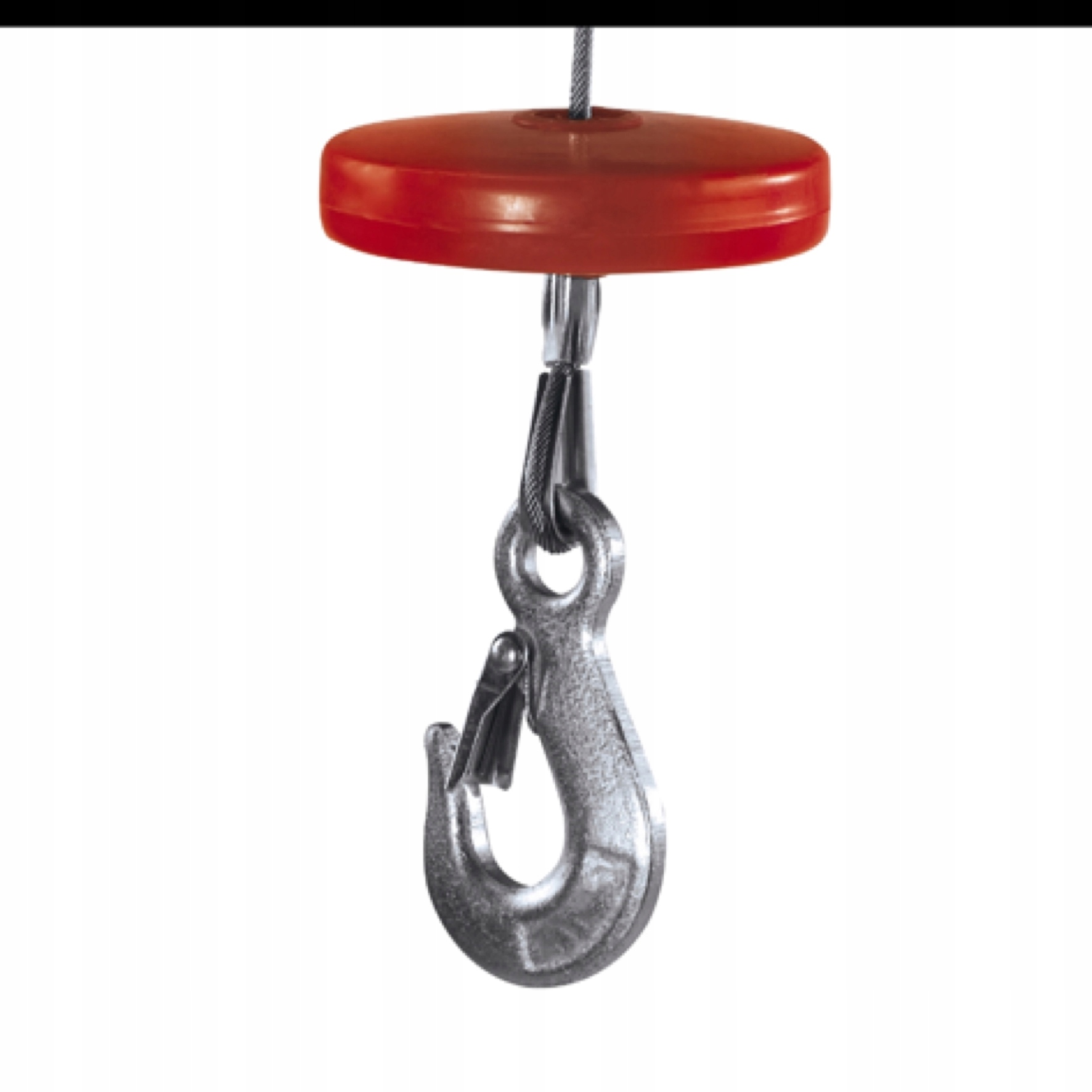 имеет крюк с зажимом, автоматический тормоз, дополнительный предохранительный тормоз, защиту от перегрева двигателя, направляющие